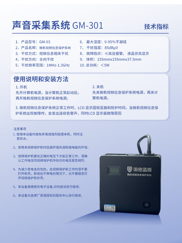 National Secret Blue Shield Microcomputer Video Information Protection System (GM-03) Precision Electronic Equipment