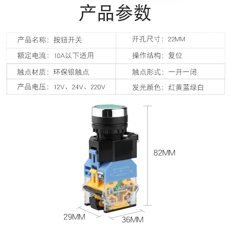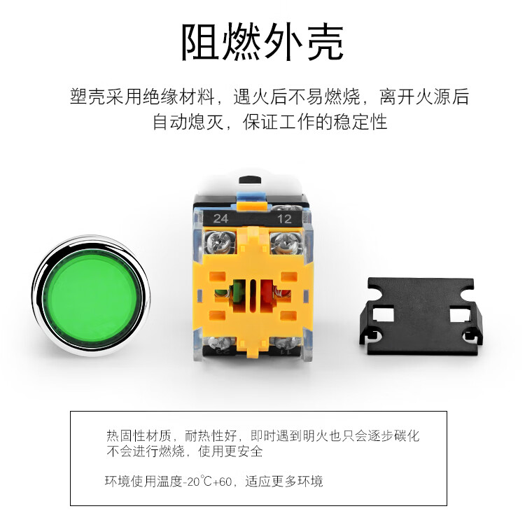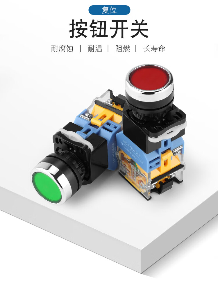 Huijun 22mm illuminated push button switch 10A power reset self-locking start luminous switch green light-self-locking-220V