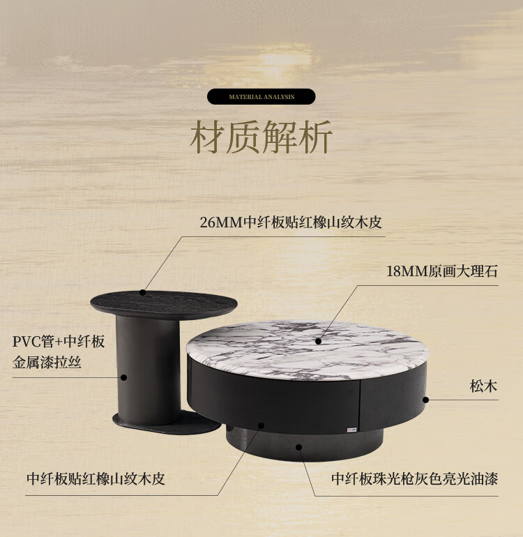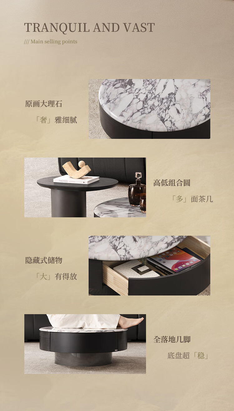 Chivas (CHEERS) marble coffee table, high-end light luxury living room coffee table and corner table combination Chivas Regal CJ172 coffee table + corner table