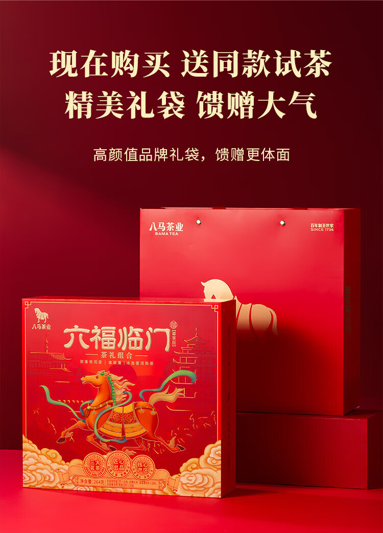 Bama Tea Liufu Linmen Exclusive Edition Black Tea Jinjunmei Tieguanyin Pu'er Ripe Tea 264g Tea Gift Box