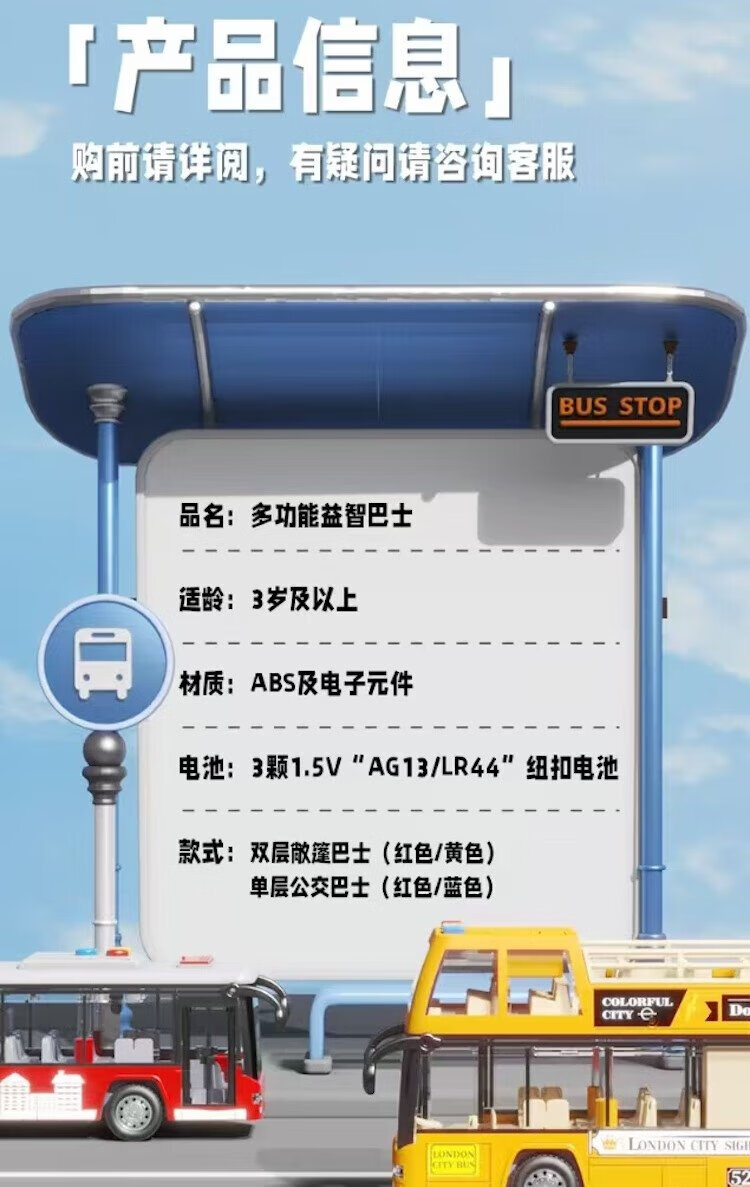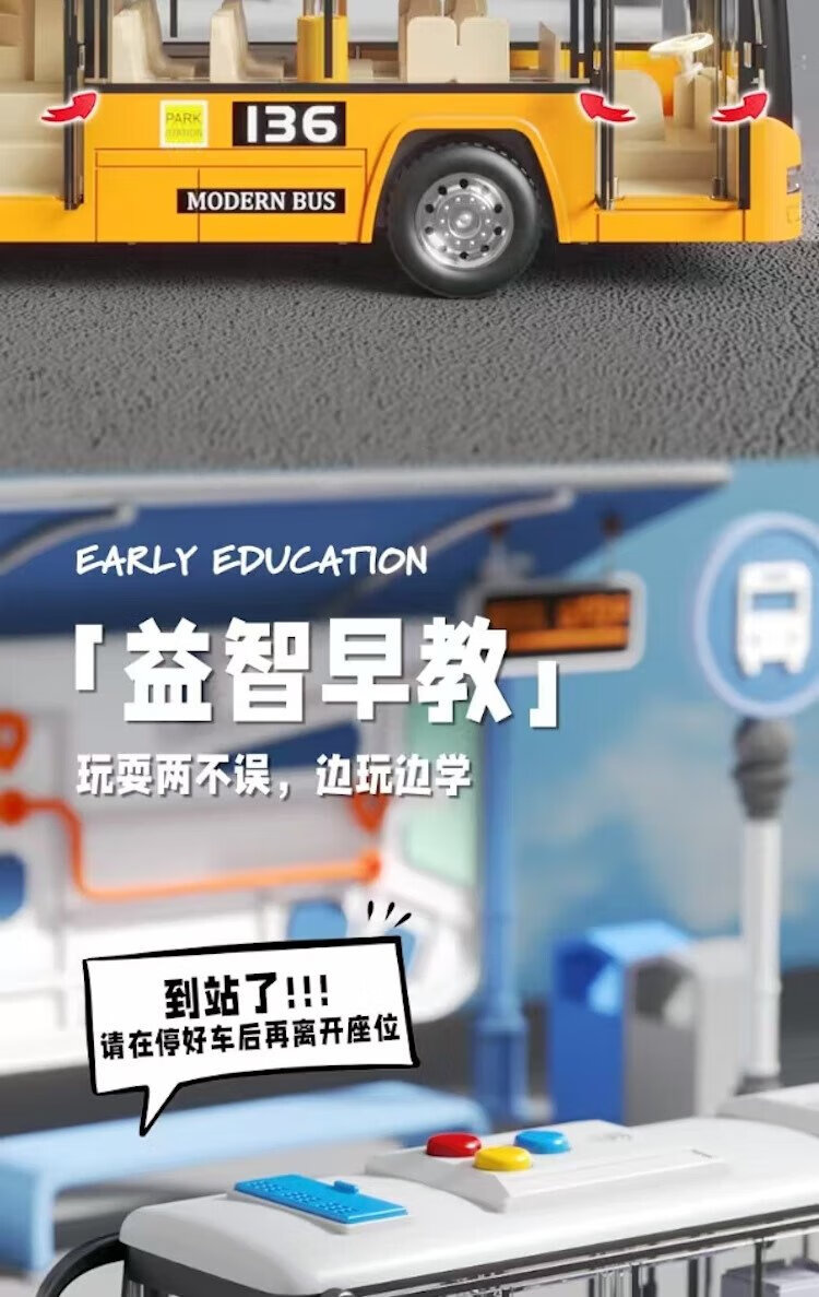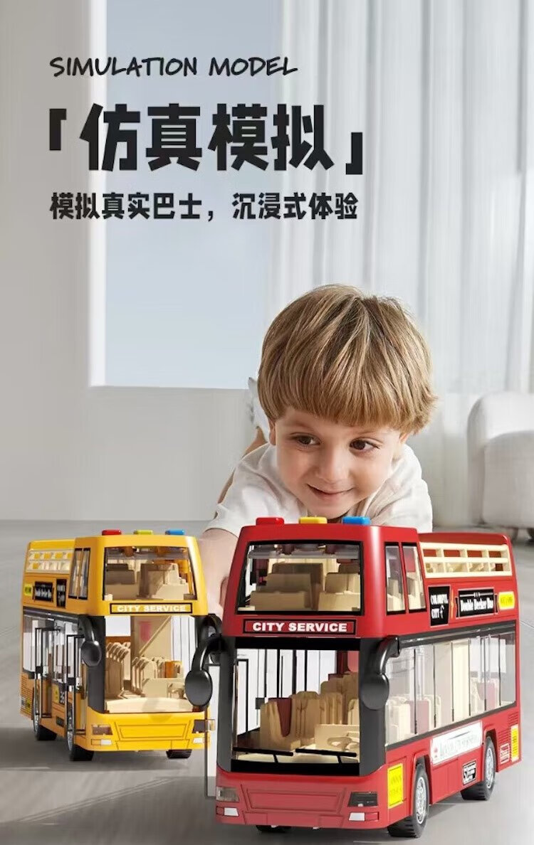 Aibilu children's toy boy school bus double-decker bus can open the door large baby bus car birthday gift