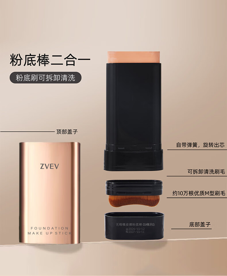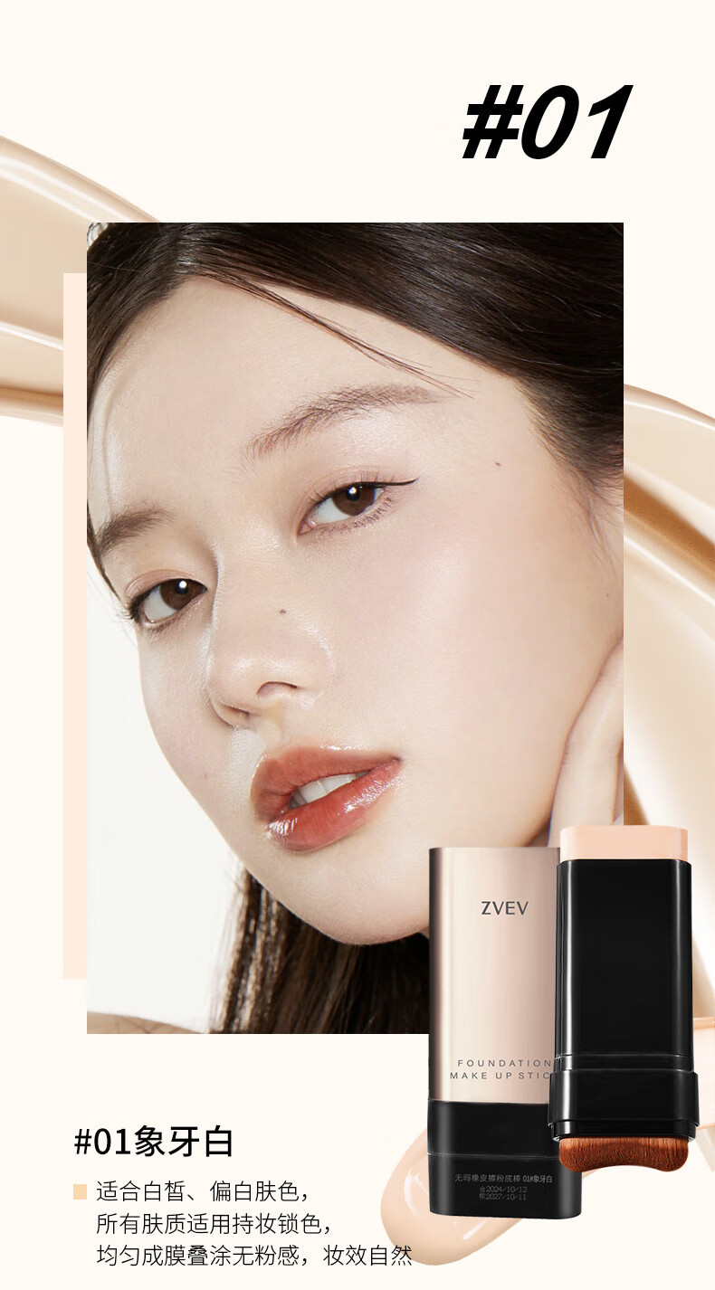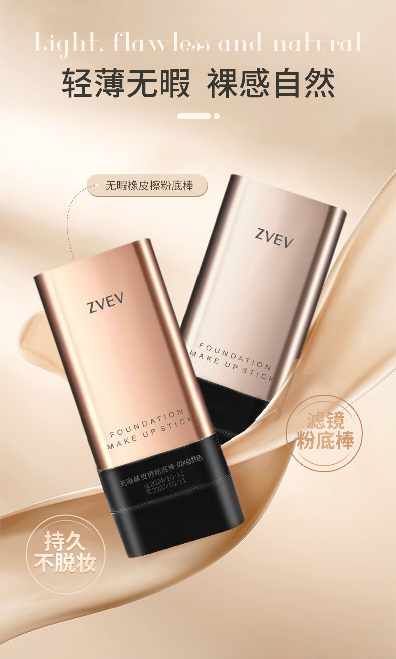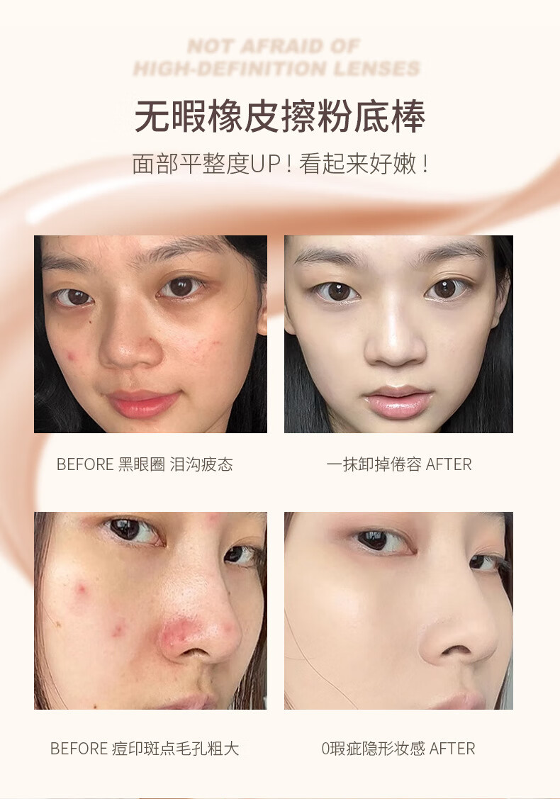 Baicuilai double-ended foundation stick eraser concealer long-lasting makeup official waterproof non-removing makeup flagship vv foundation cream ivory white