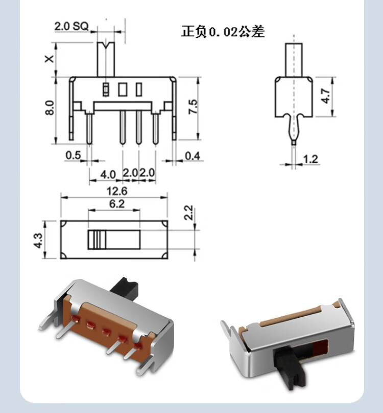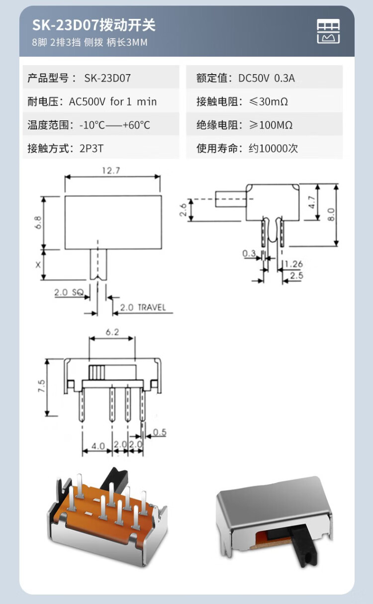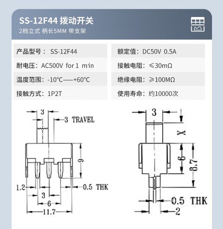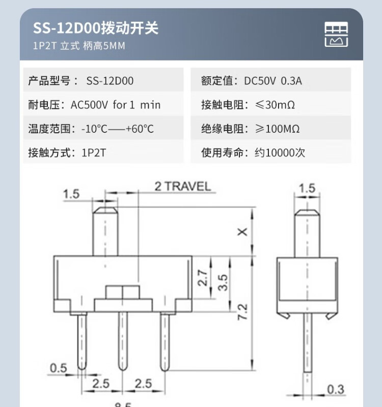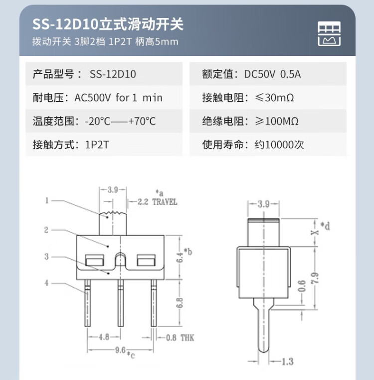 Huijun toggle switch single row double row in-line horizontal small micro power switch sliding gear SS-12D00 vertical - single row 3 feet 2 gears 10 pieces