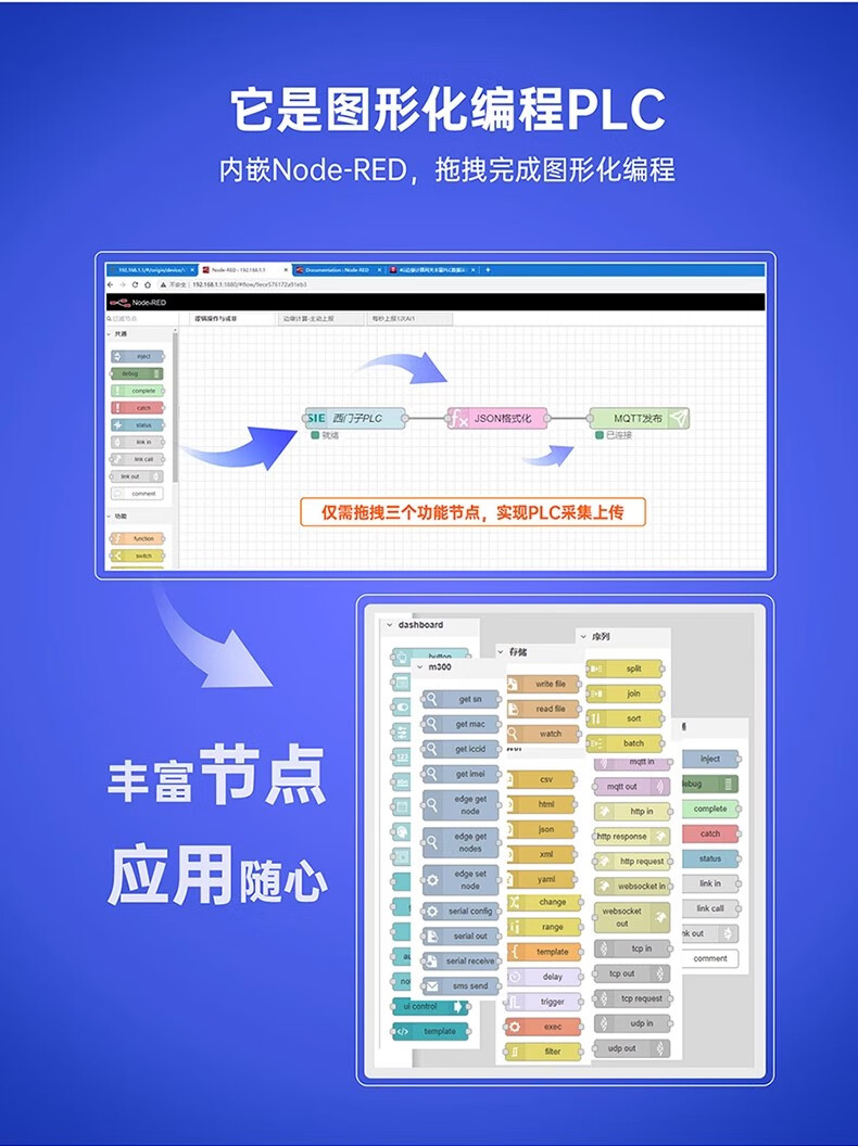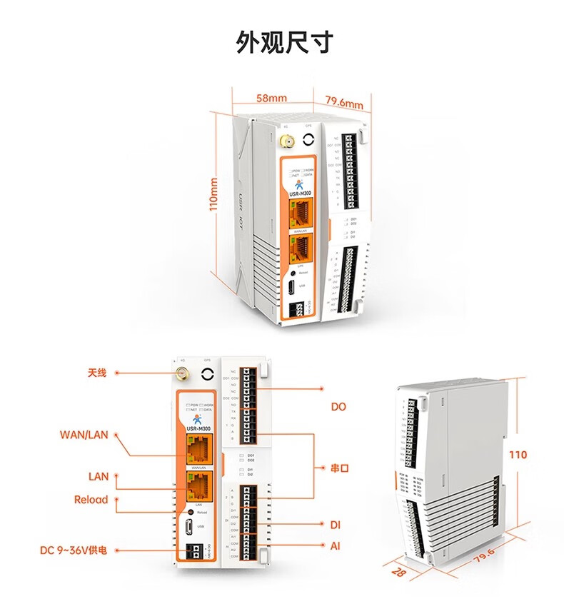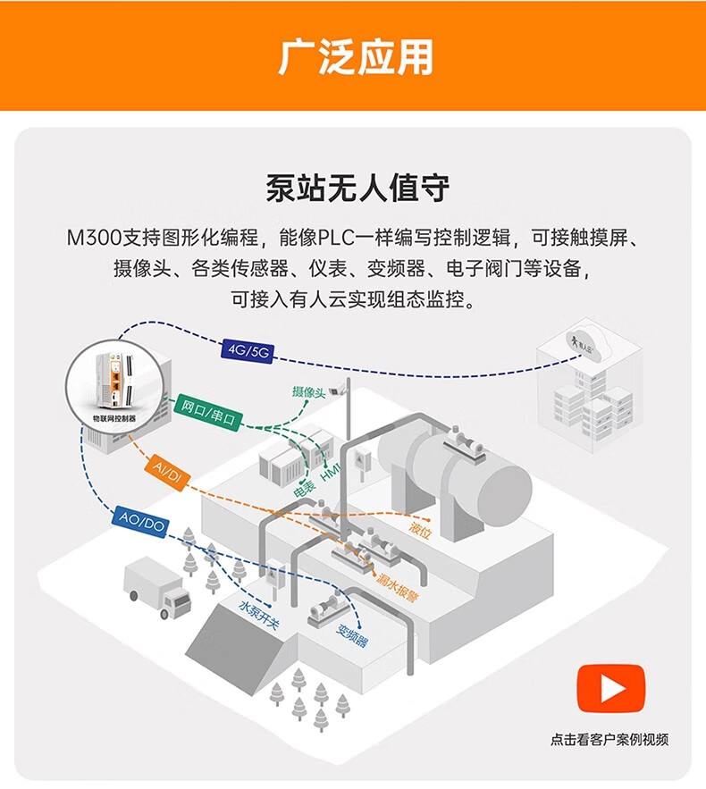 IoT graphical programming IoT controller edge computing gateway data edge collection computing active reporting read and write USR-M300-GR (5G)