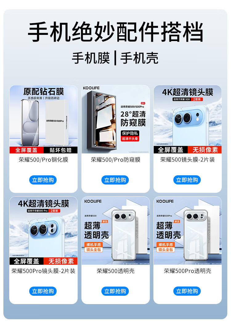 KOOLIFE is suitable for Honor 500 mobile phone case protective cover Huawei honor Honor 500 mobile phone protective case lens all-inclusive simple skin-friendly transparent soft shell that dilutes fingerprints outer back case