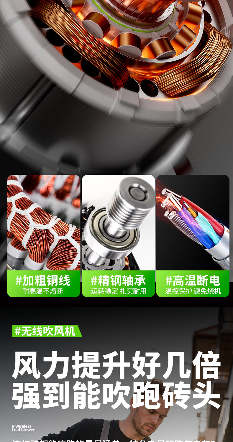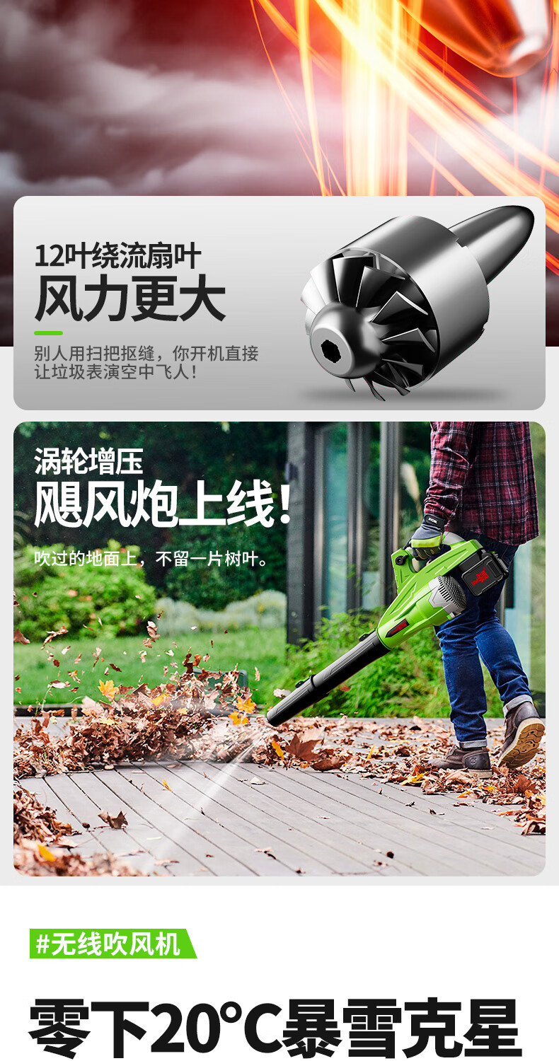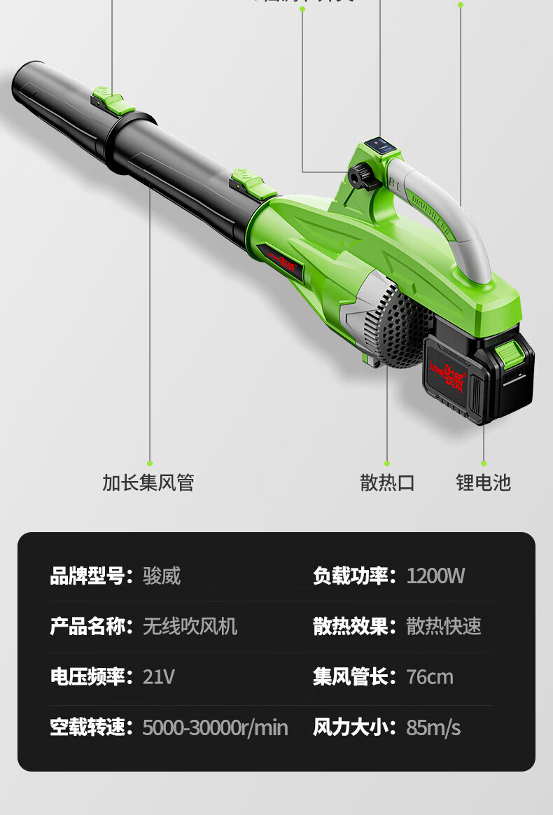 Junwei rechargeable lithium-ion blower industrial high-power storm blower powerful household blower blower blows snow and leaves