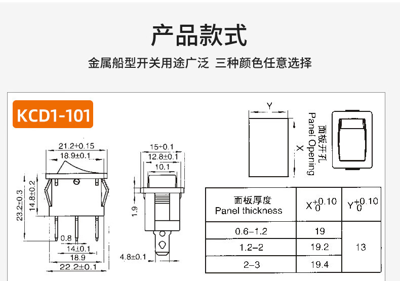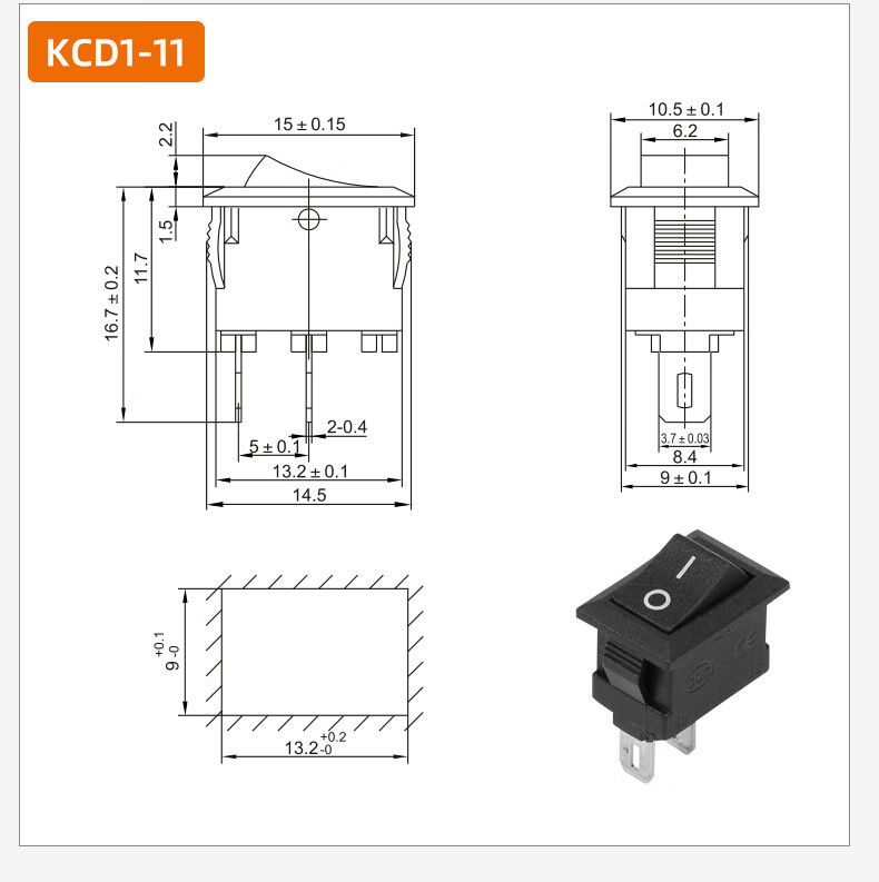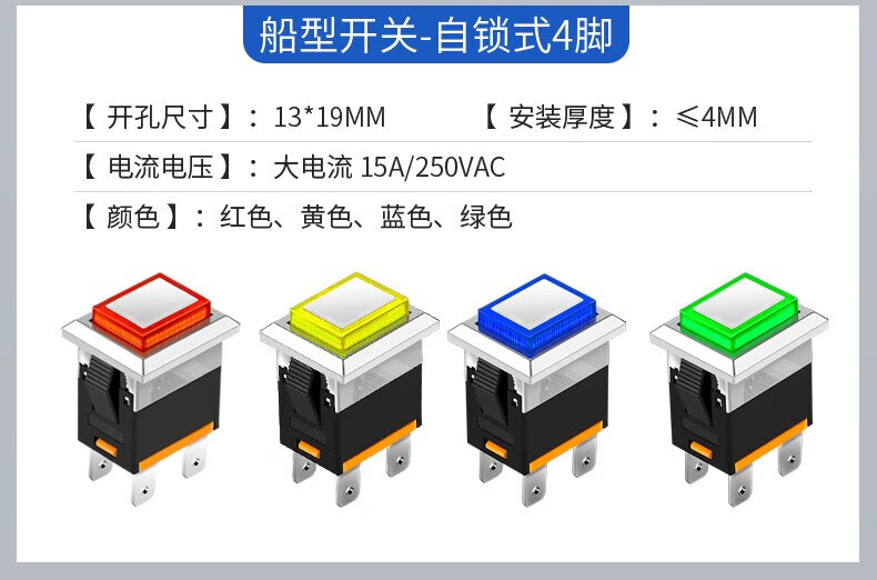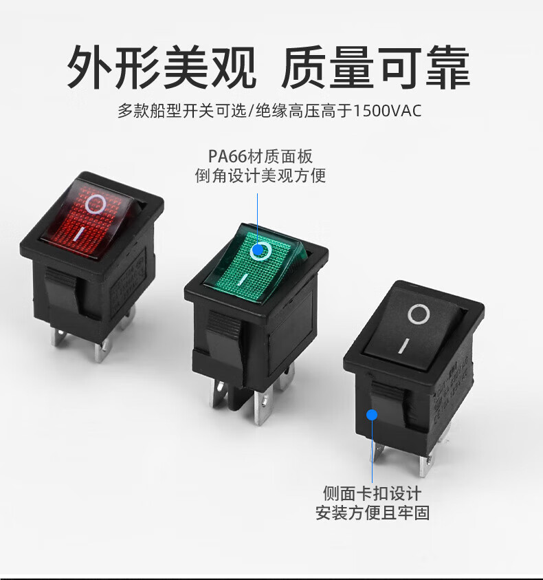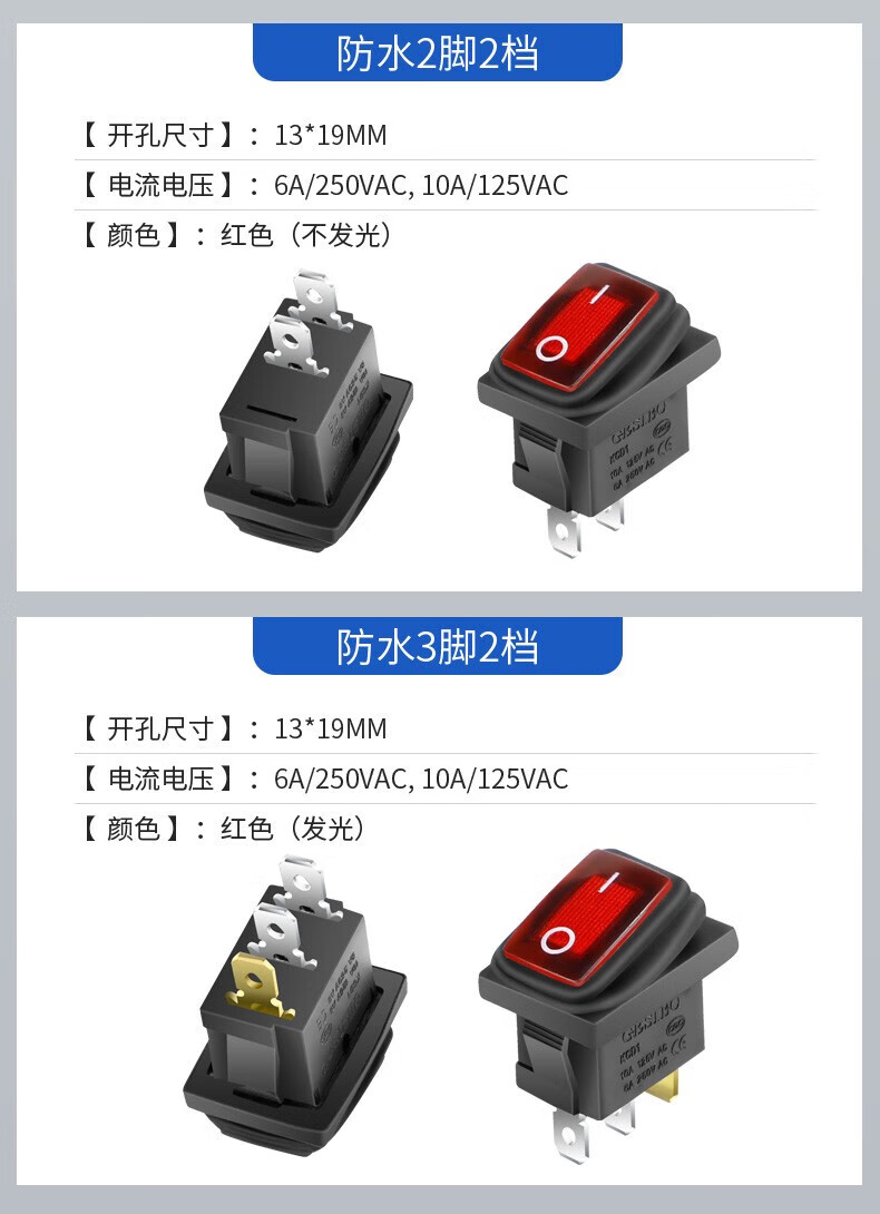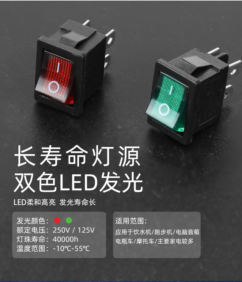 Huijun KCD1 small boat-shaped switch water dispenser electronic scale boat-shaped rocker power switch with light, four legs and two red lights
