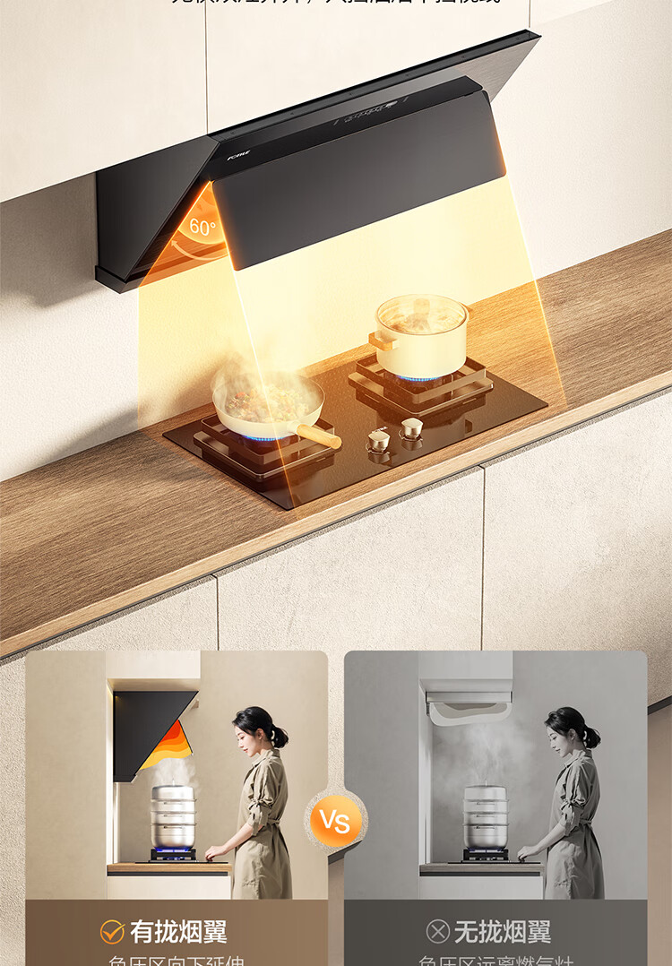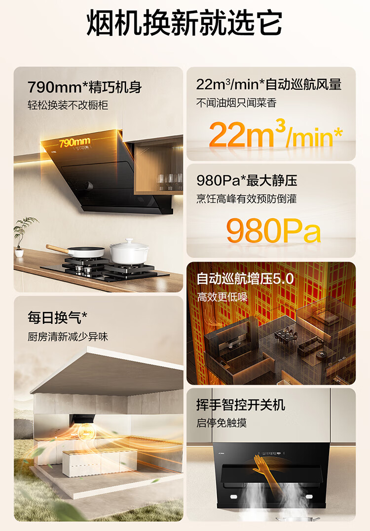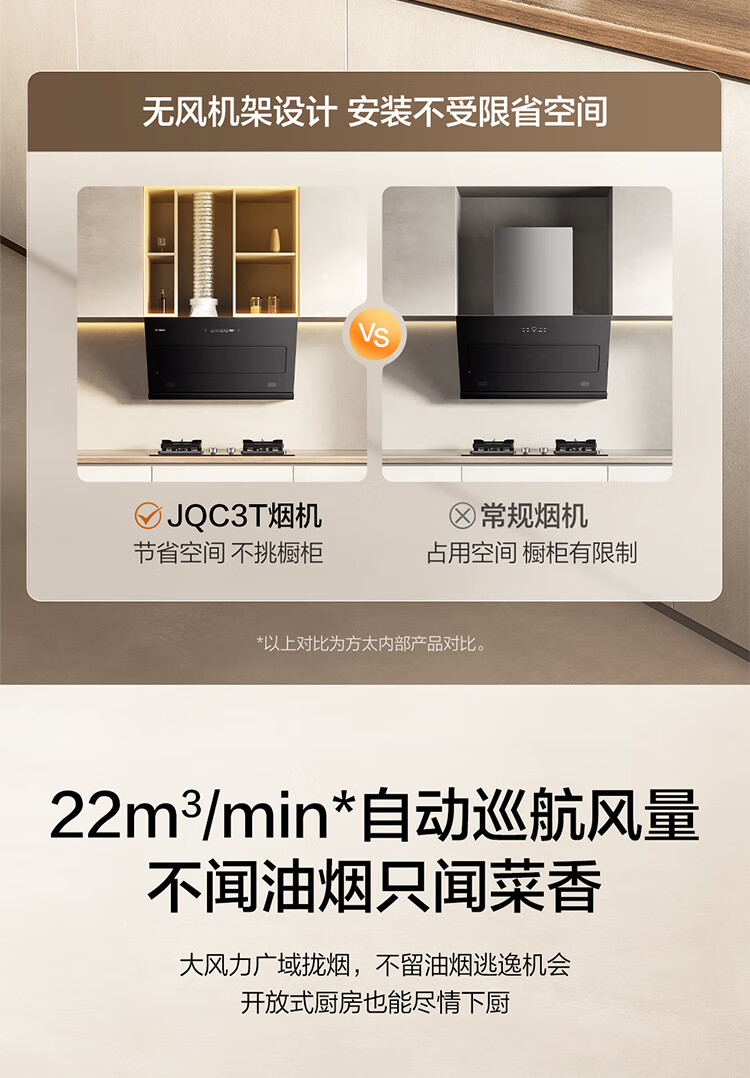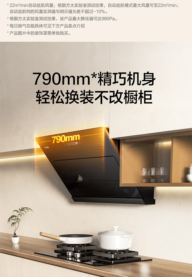 FOTILE JQC3T side suction 22 air volume, Fengmo Cube, instant suction, small size rental and replacement cost-effective, wave sensor, trade-in 20% off range hood for home kitchen