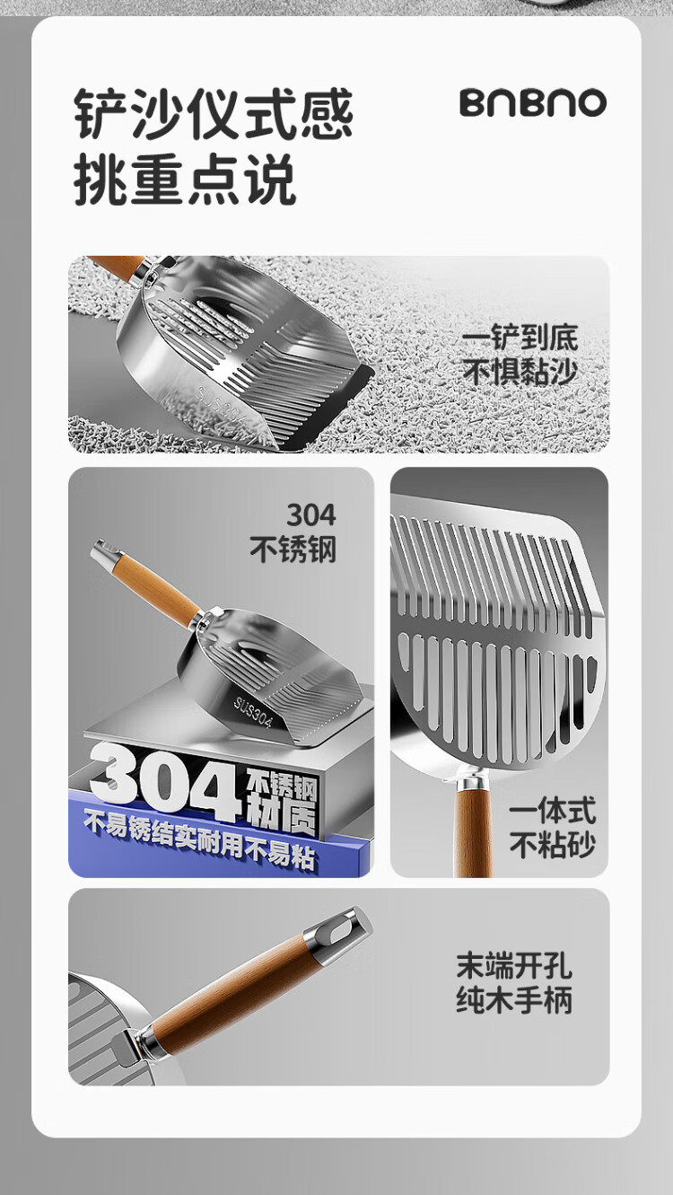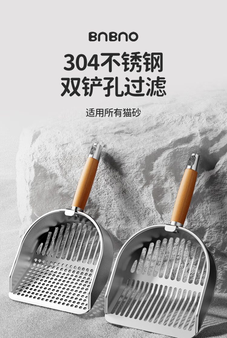 BNBNO stainless steel cat litter shovel cat poop shovel fine hole small hole poop shovel artifact tofu mineral sand special screen shovel cat litter shovel