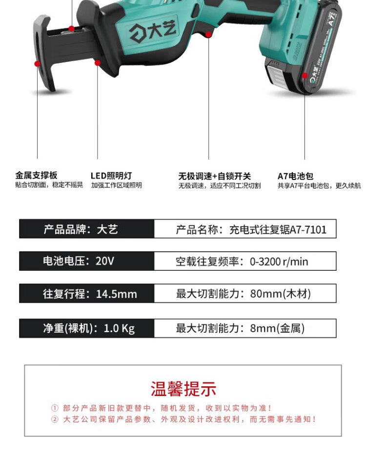 Dayi Chainsaw Saber Saw Reciprocating Lithium Chainsaw 7101 Multi-Function Outdoor Household Portable Chainsaw Jingdong Self-operated Flagship Store