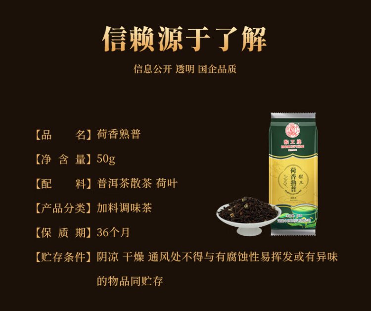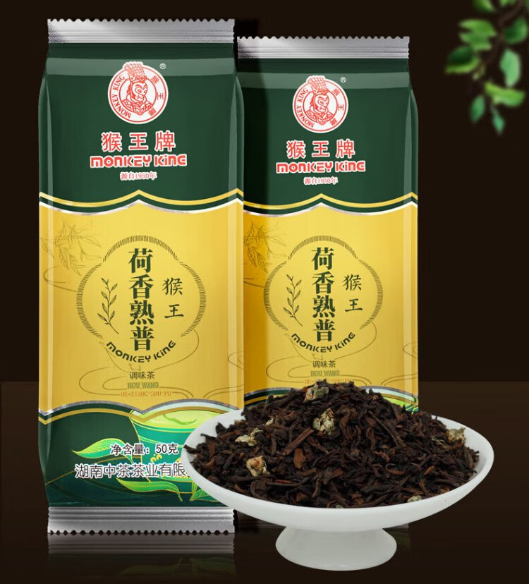 Monkey Ace Pu'er Ripe Tea Lotus Fragrance Pu'er Ripe Pu Yunnan Authentic Pu'er Ripe Tea 50g Bag