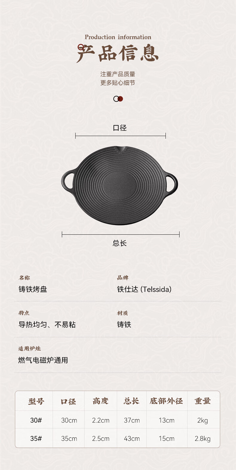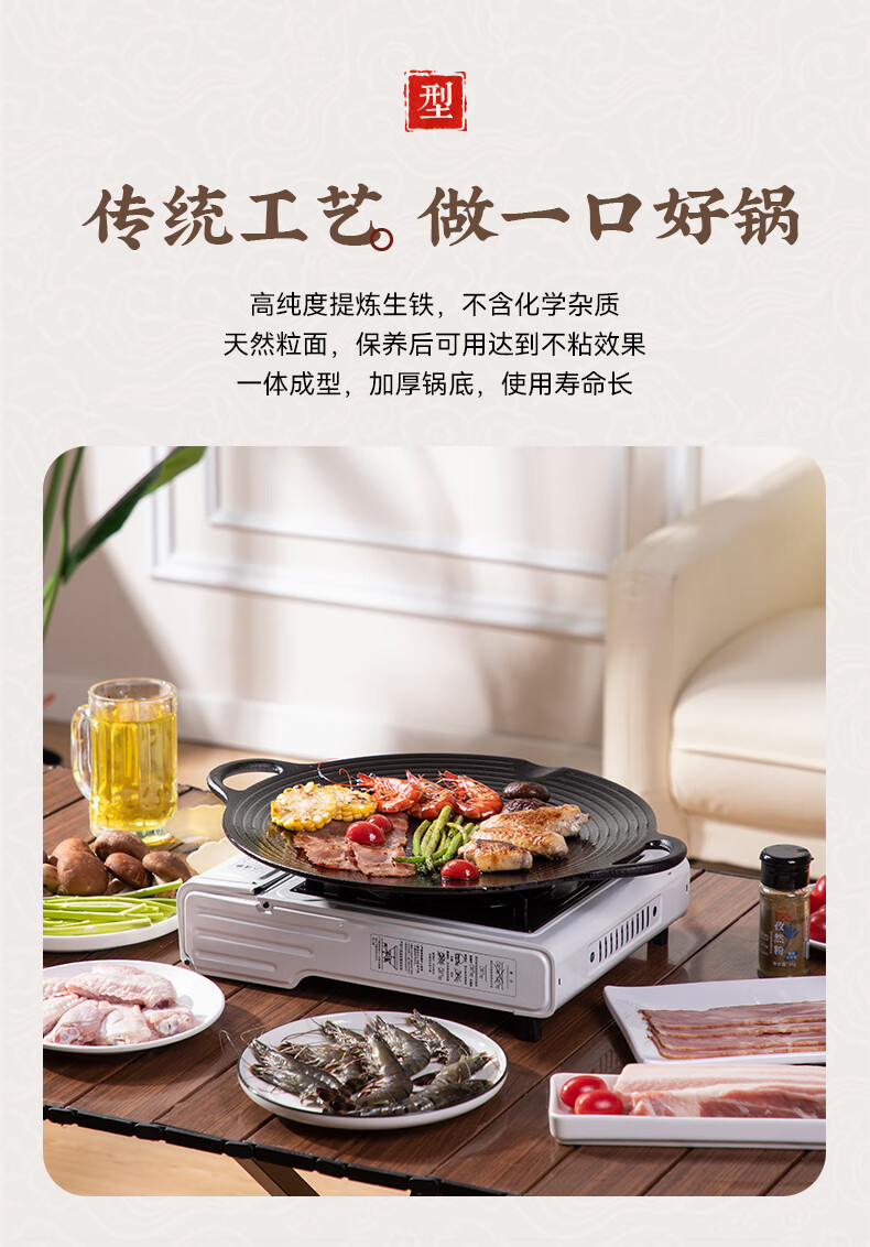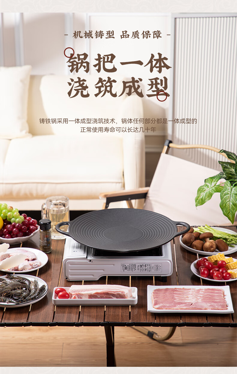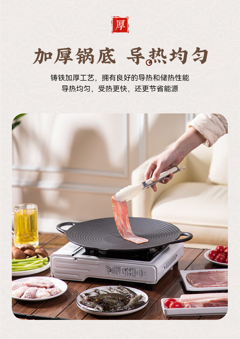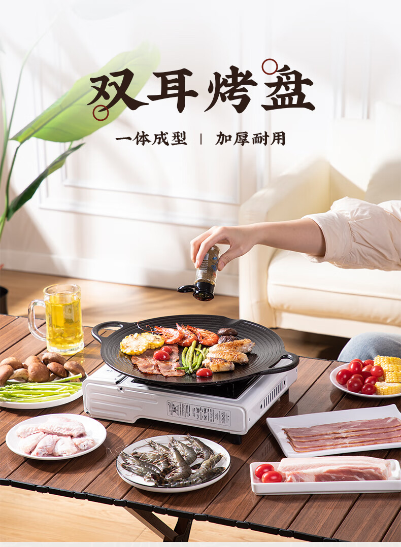 Telssida cast iron grill pan outdoor cassette stove barbecue plate uncoated barbecue pot large teppanyaki non-stick camping home