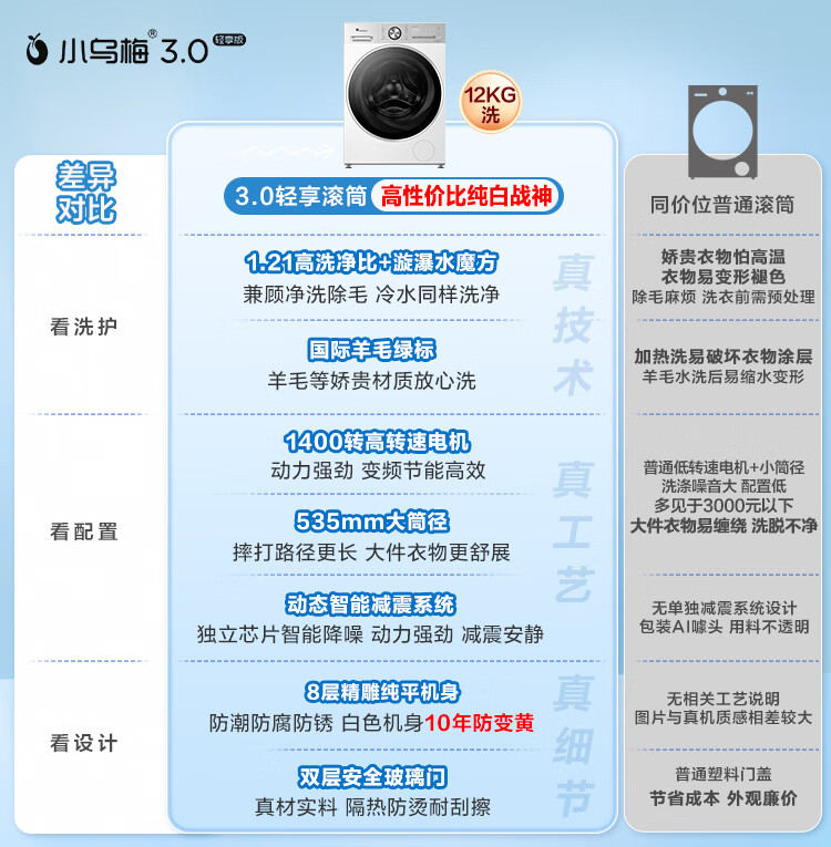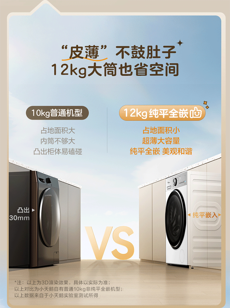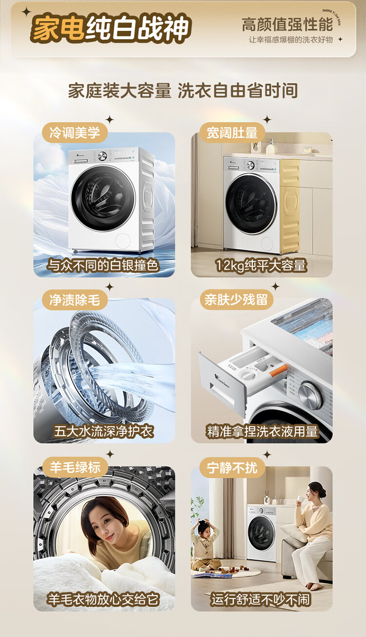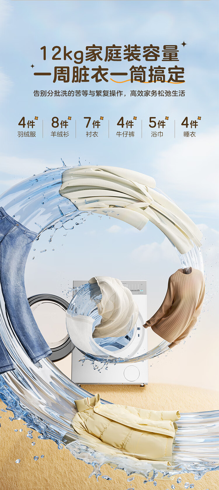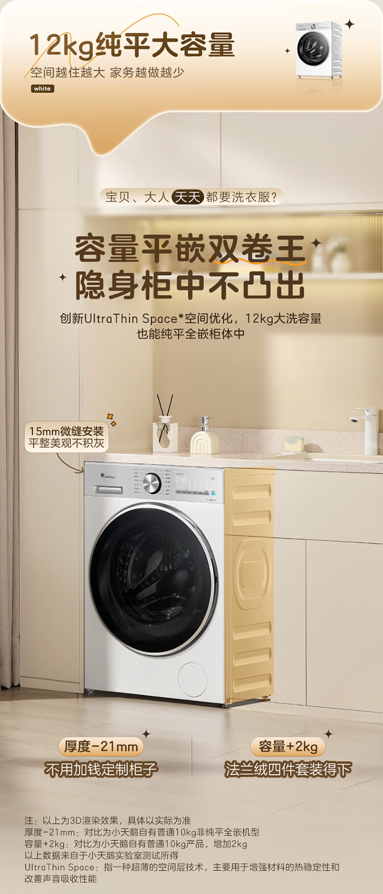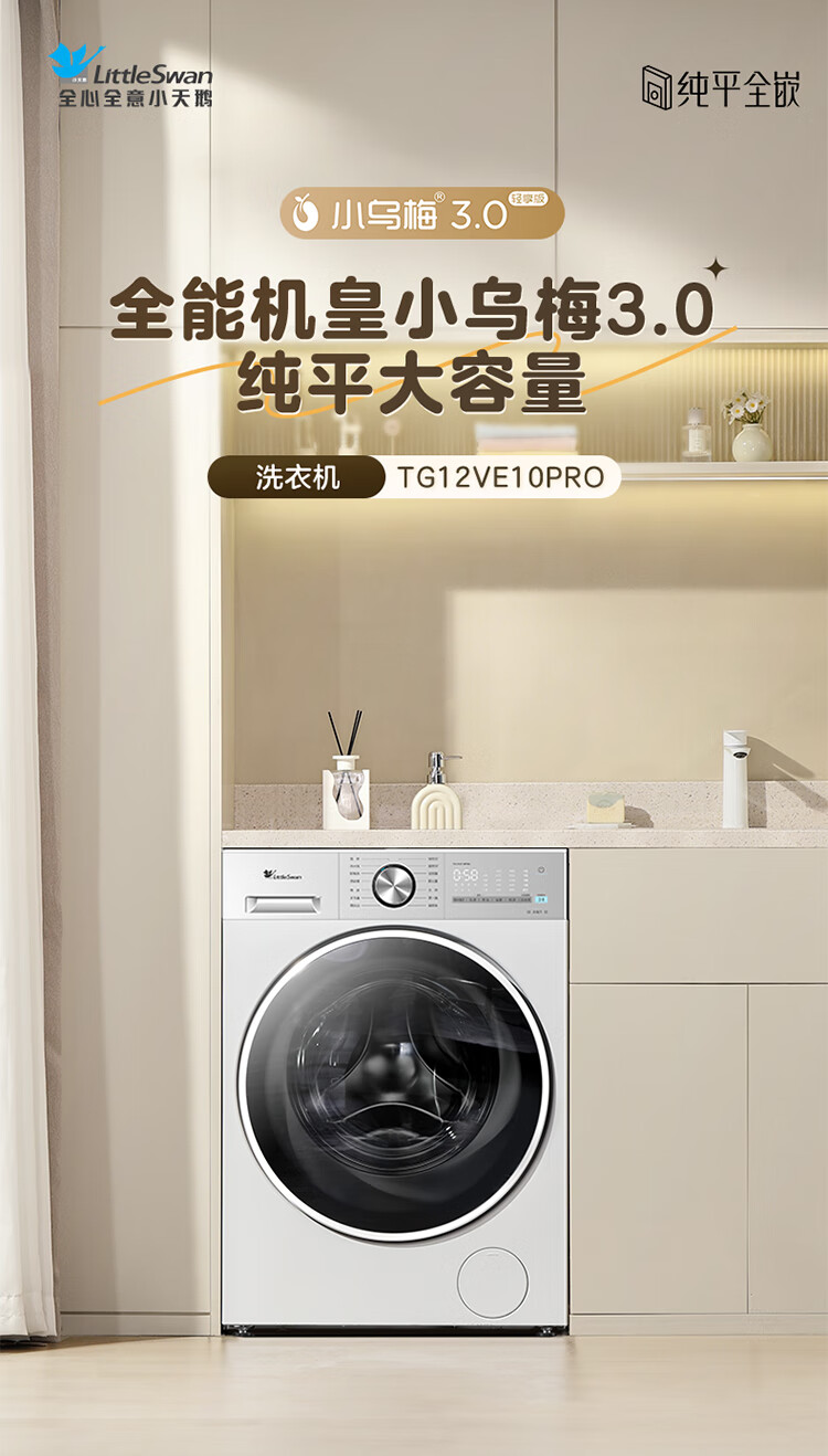 LittleSwan Xiaowumei 3.0 light version, fully automatic drum washing machine, 12KG flat screen, large capacity, water cube TG12VE10PRO, trade-in, national subsidy, underwear washing