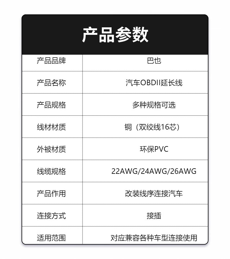 Baye OBD one-to-one adapter cable 26AWG 16-pin male to female car diagnostic extension cable 3 meters BY-M26F030