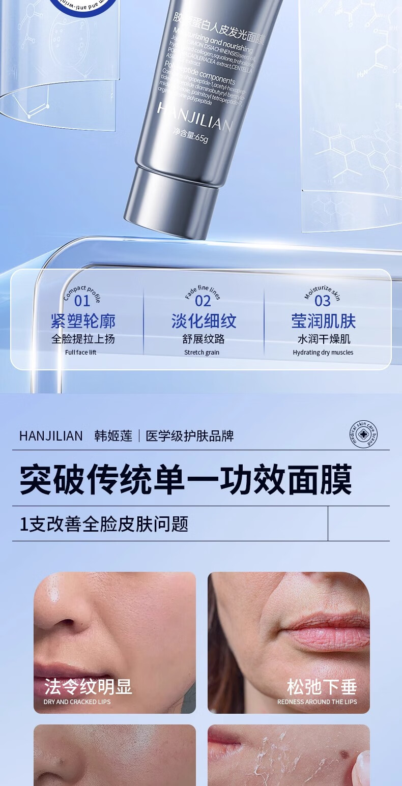 Shidanya Childlike Collagen Human Skin Luminous Mask Lifting, Firming, Anti-Wrinkle Moisturizing and Replenishing Wei Xue's Same Style Mask