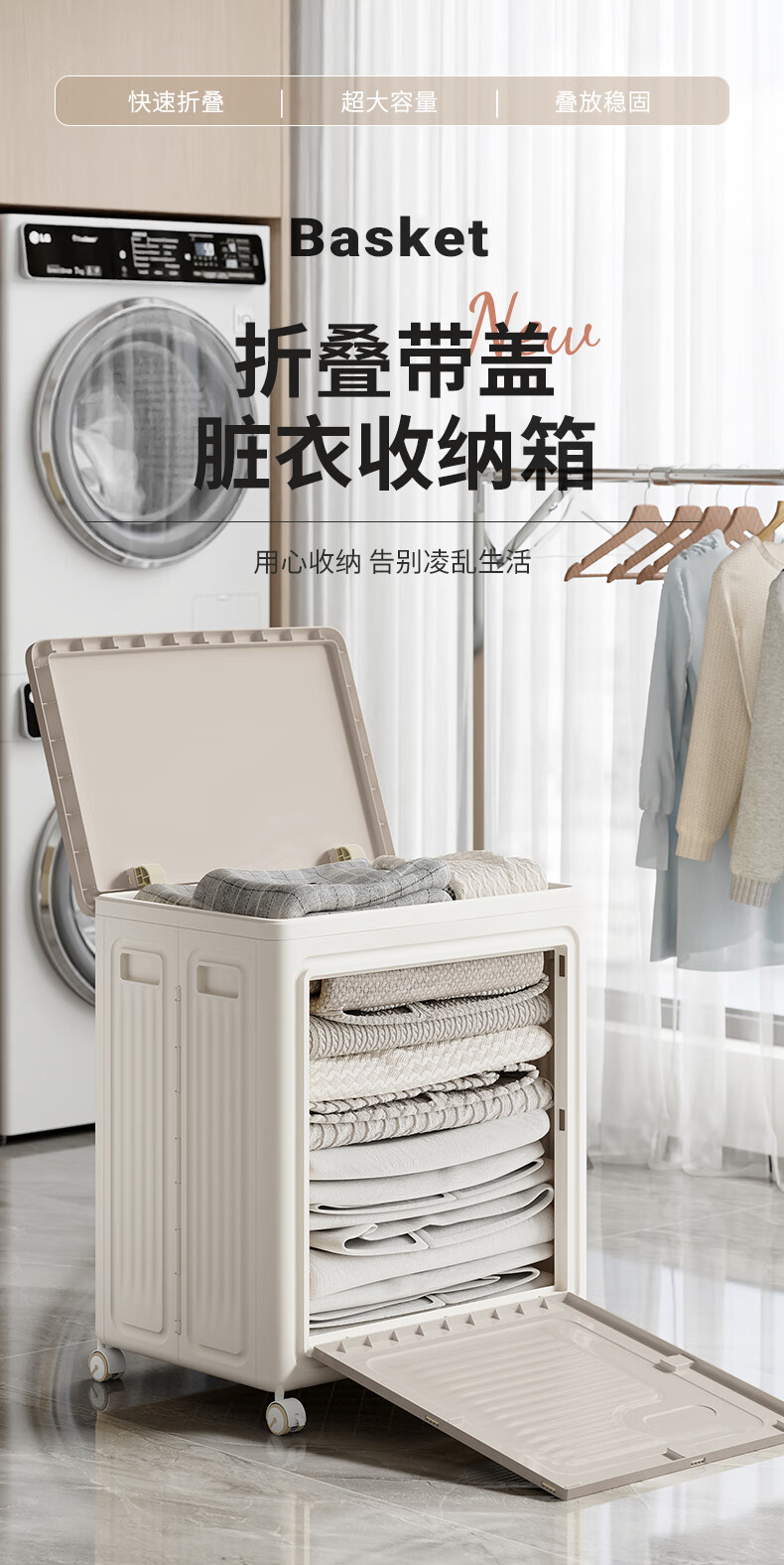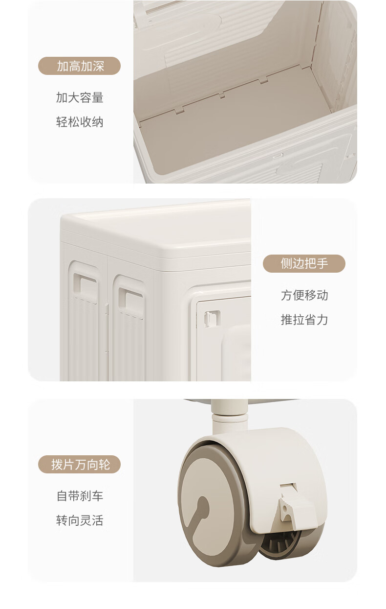 JEKO&JEKO juneng storage box foldable clamshell wheeled storage box large capacity 58*40*67.5 cm