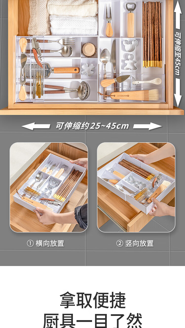 Home KATEI STORY Japanese drawer storage box with built-in kitchen retractable cutlery chopsticks divider box multi-function organizer box