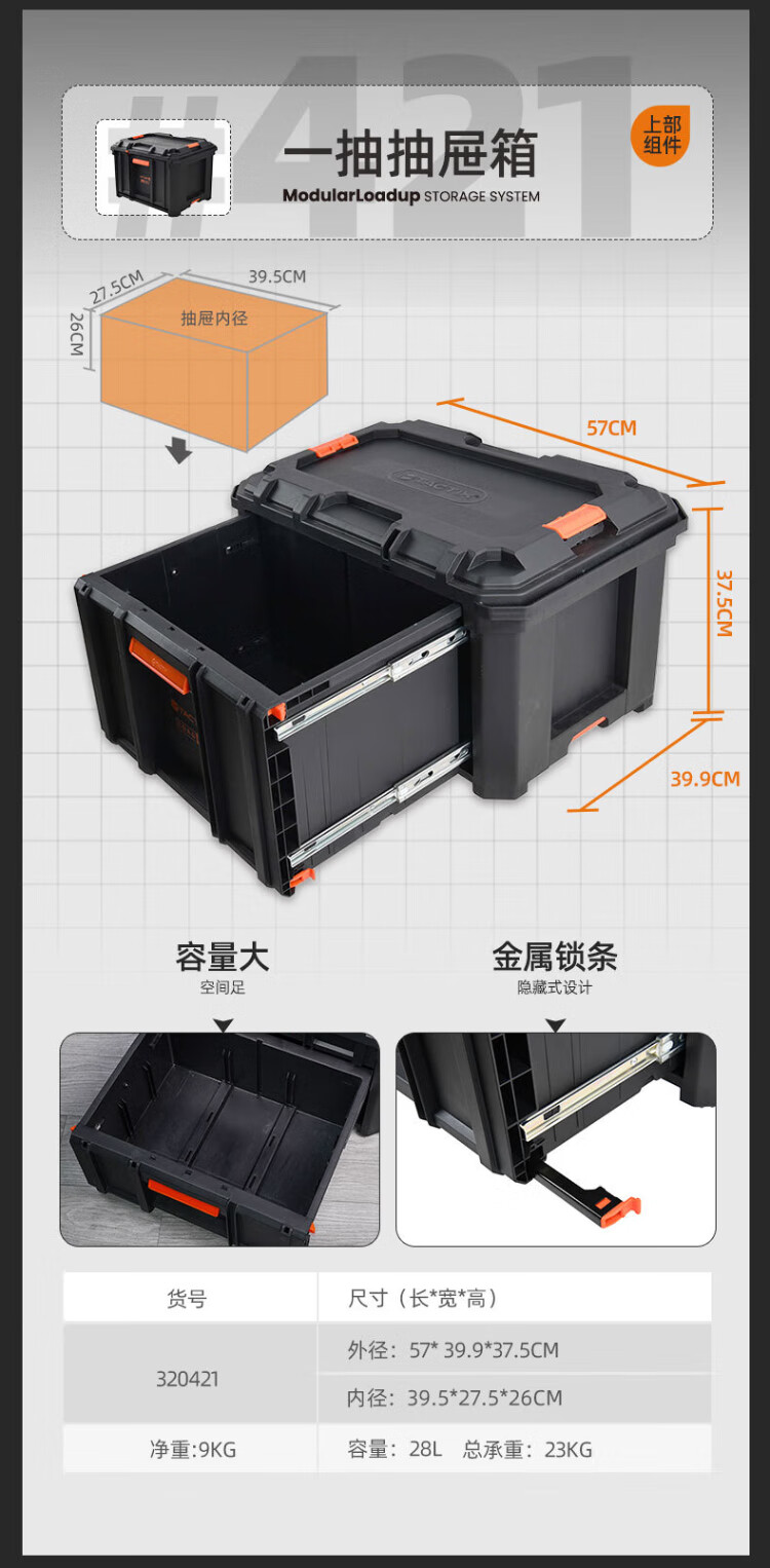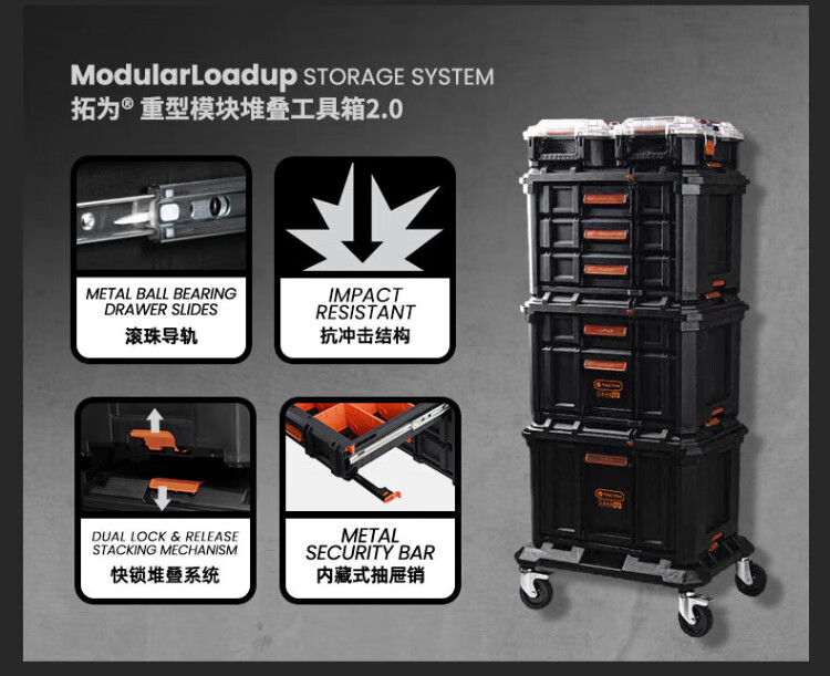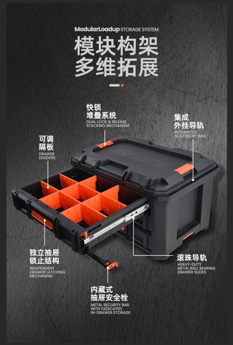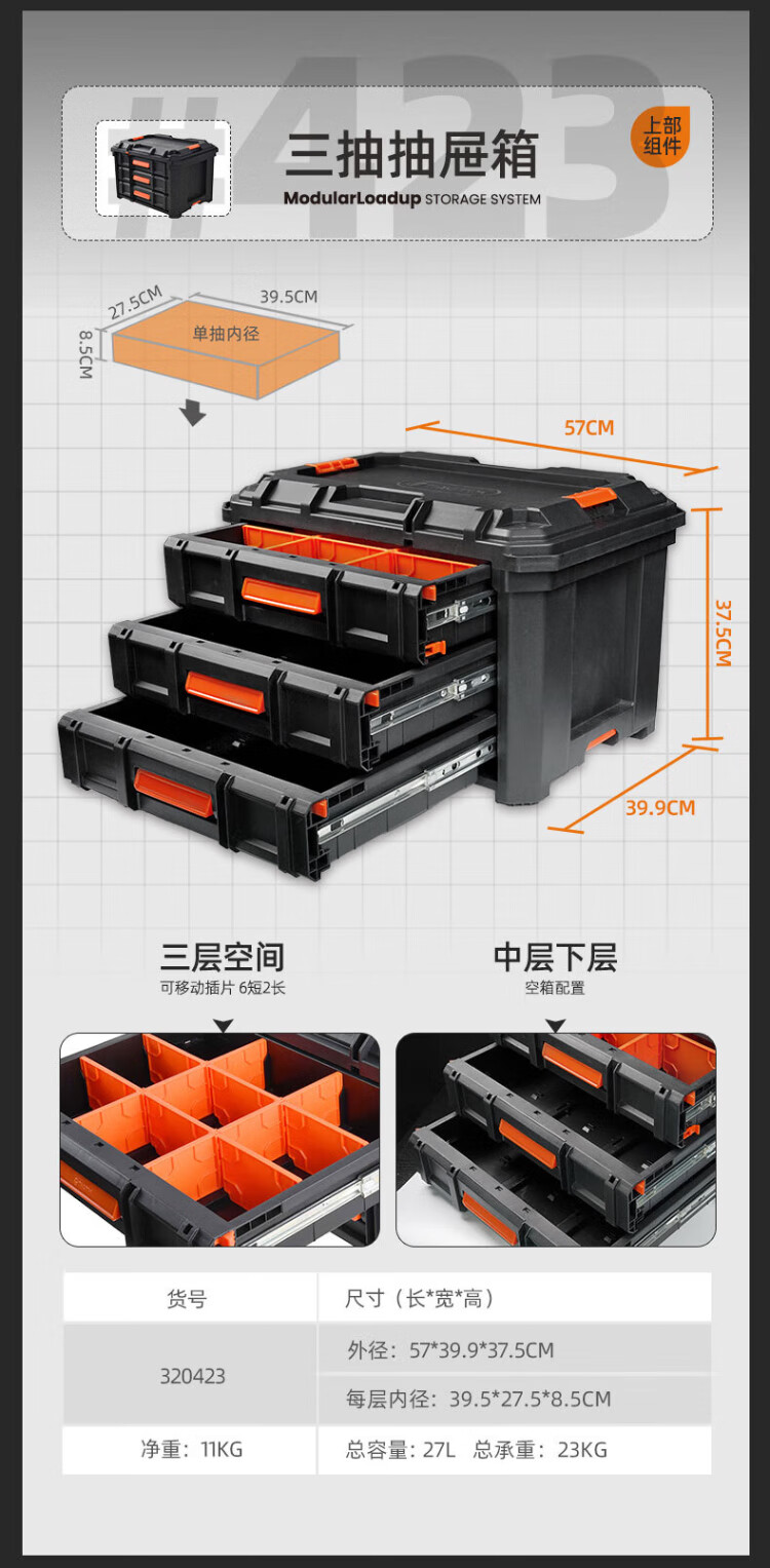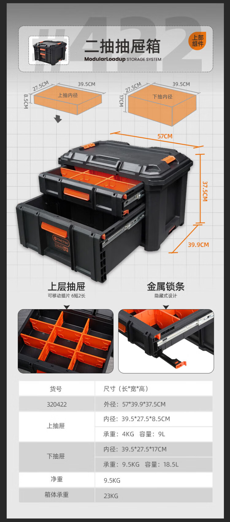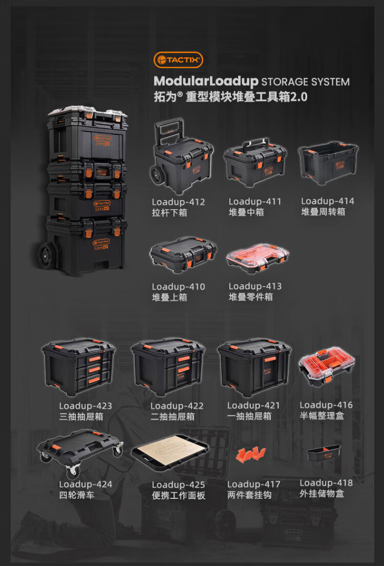 Tactix three-layer drawer tool box 2.0 heavy-duty industrial-grade storage box stacking accessories hardware organizing box 320423