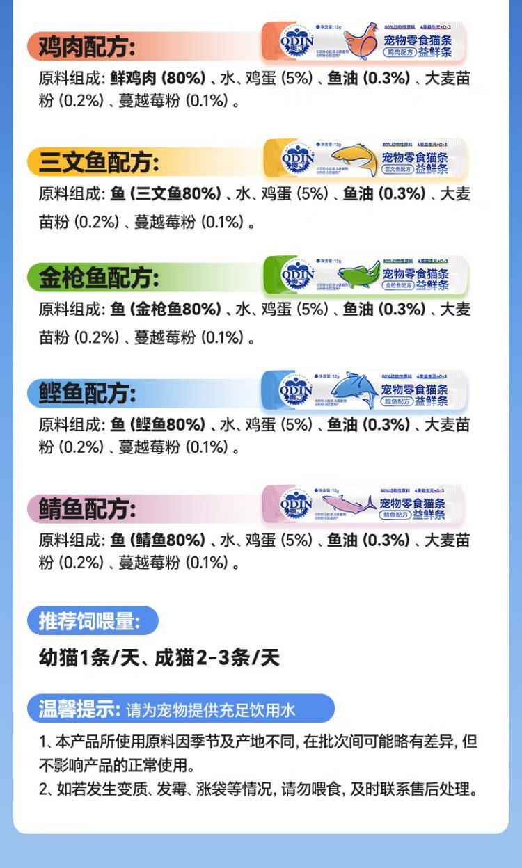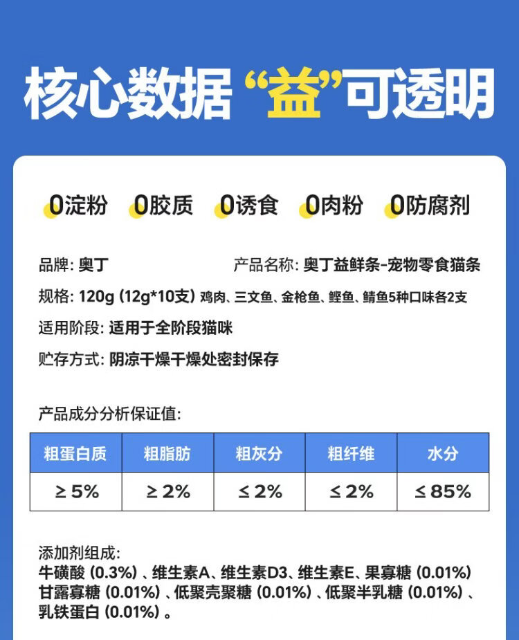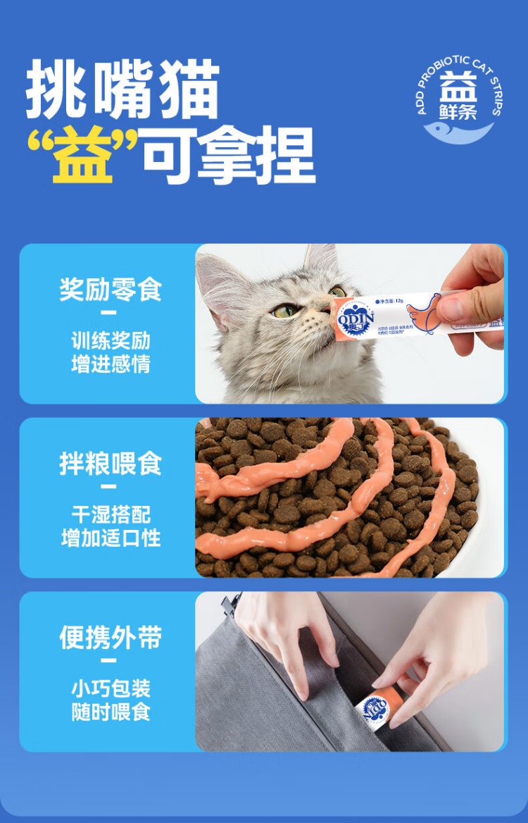Odin cat strips, fresh meat cat snacks for adult cats and kittens, Yi Xian strips, wet food, mixed flavors 12g*10 pieces