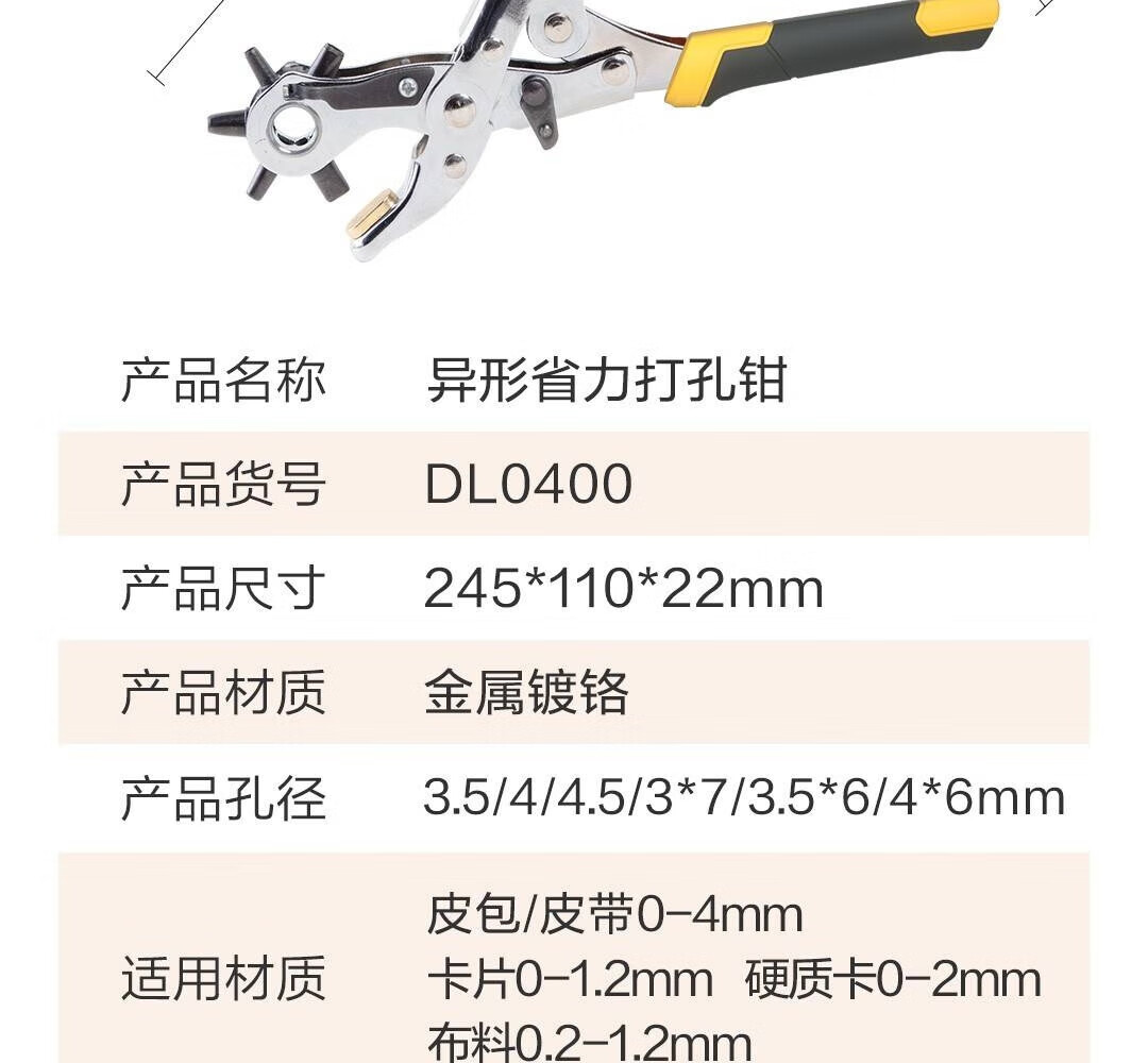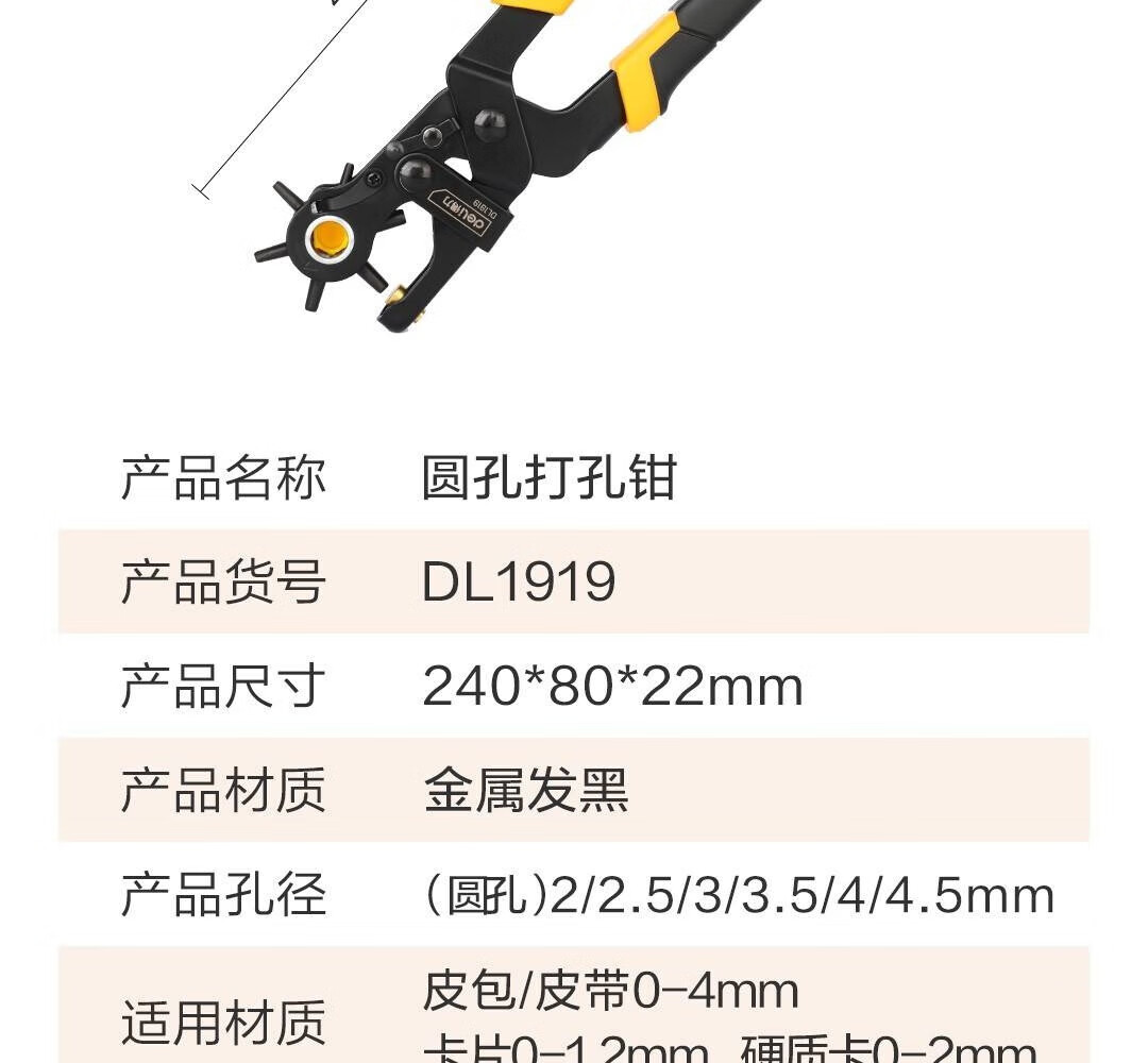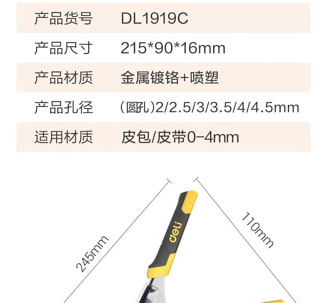 Deli heavy-duty labor-saving belt puncher punching pliers belt leather goods multi-purpose punch 9 inches DL1919A