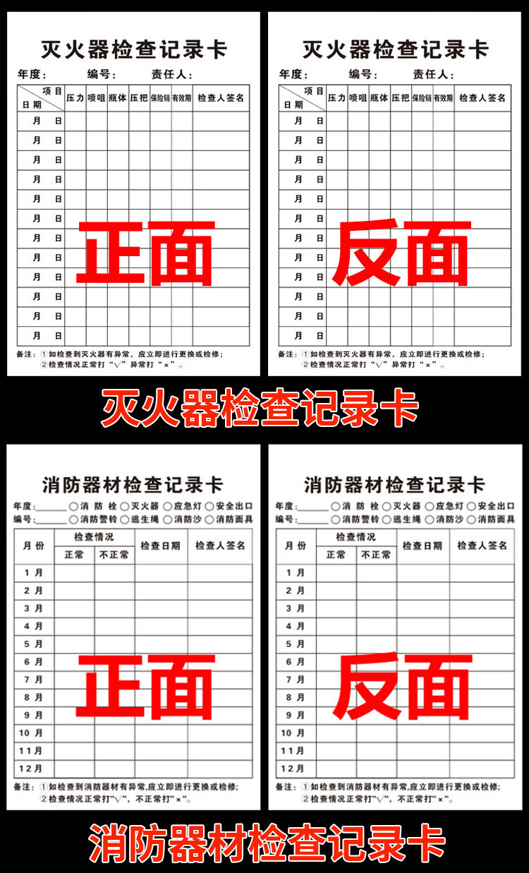Shanglijin Fire Extinguisher Inspection Record Card Fire Equipment Inspection Card Point Inspection Card Monthly Inspection Card Double-sided (card + tie) 13*9cm (20 sets)