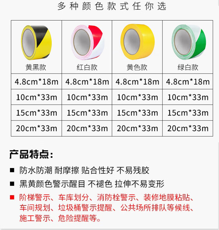 Yinjuhui black and yellow warning tape safety warning landmark line zebra isolation tape workshop identification marking positioning tape yellow and black 48mm*33 meters