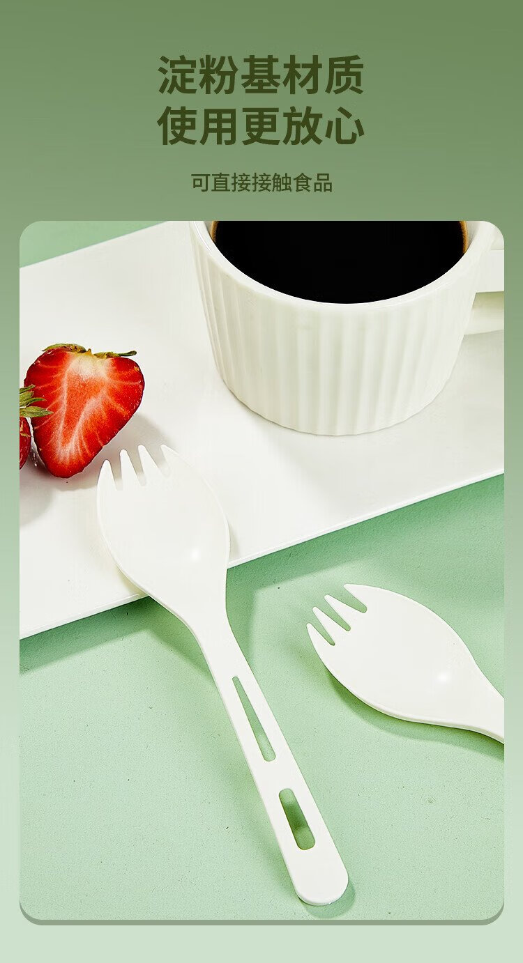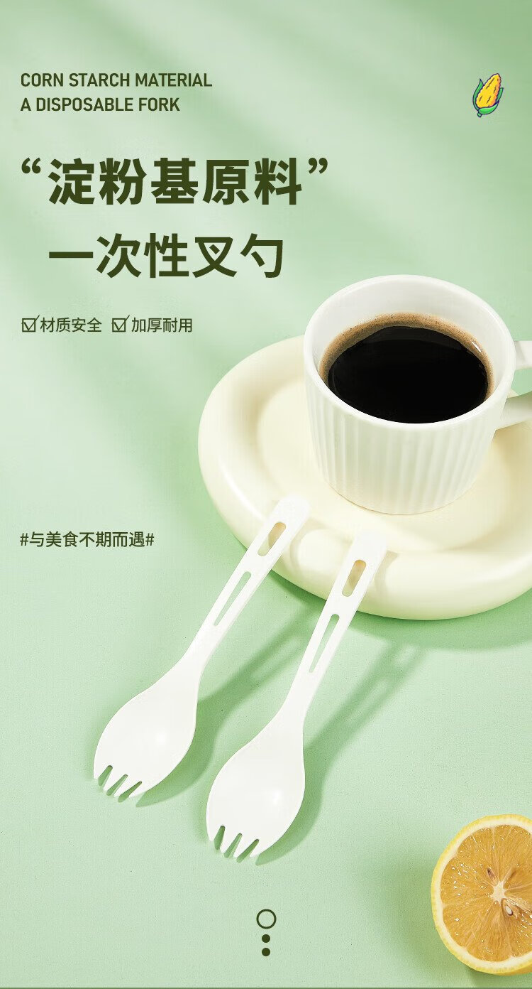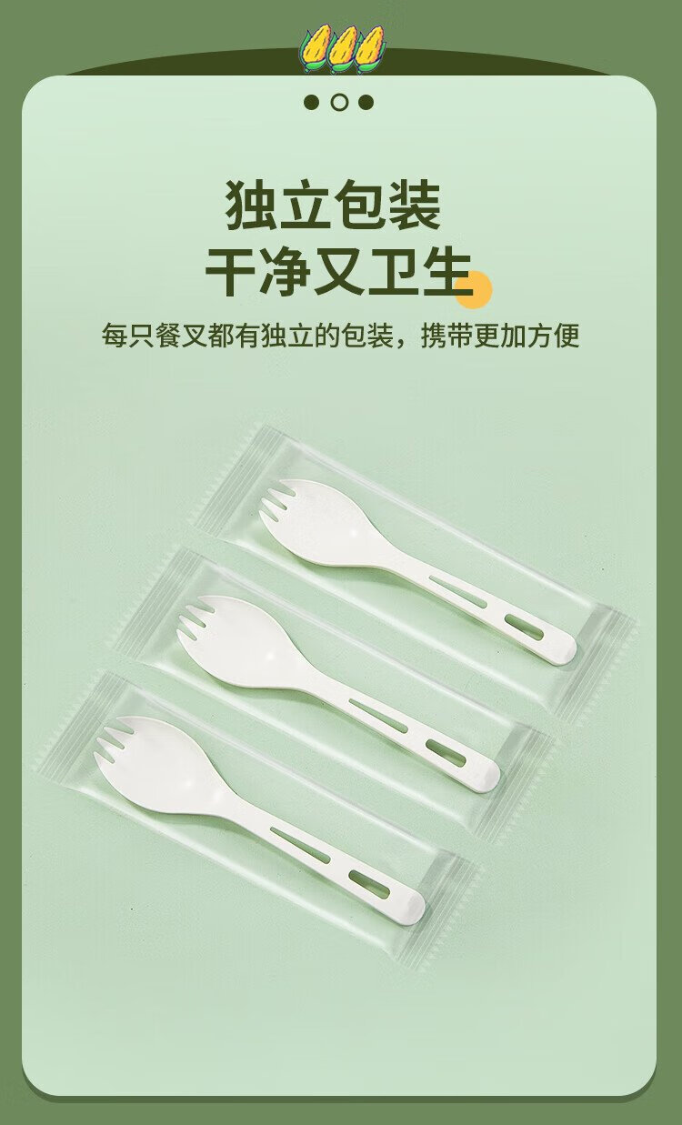 SHUANG YU disposable forks and spoons 50 pieces individually packed corn-based plastic spoons and cutlery fruit cake ice cream forks and spoons