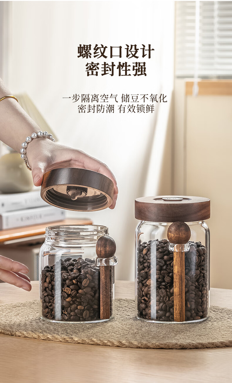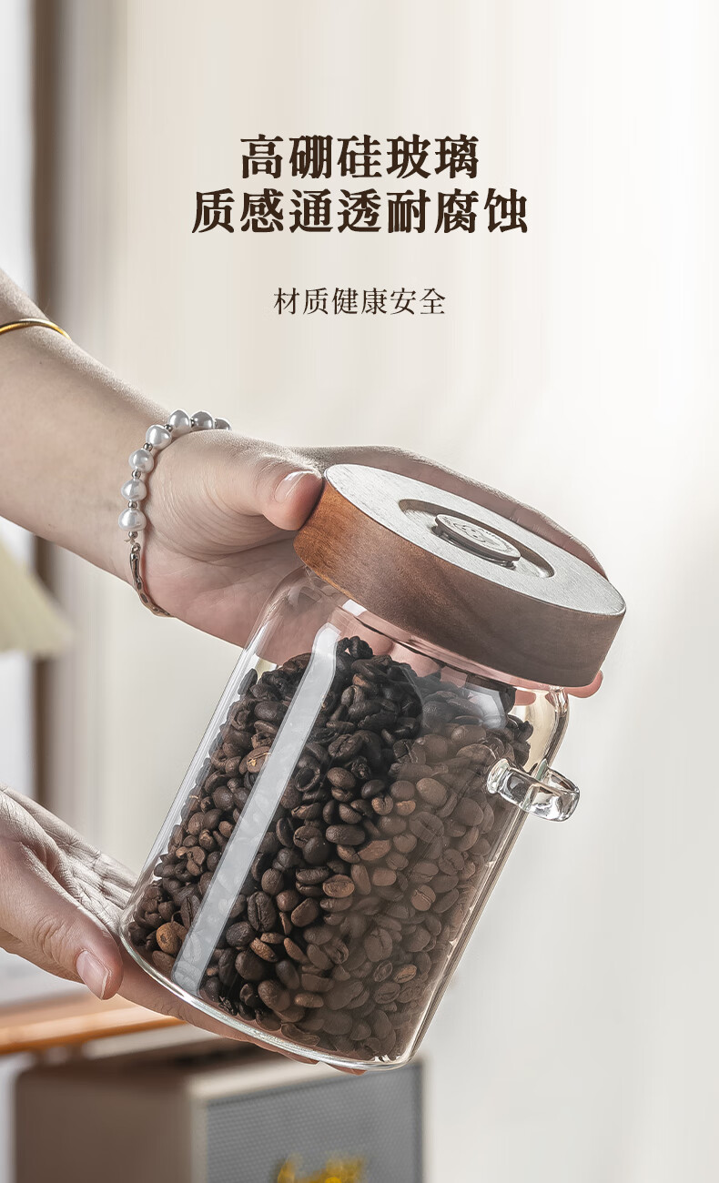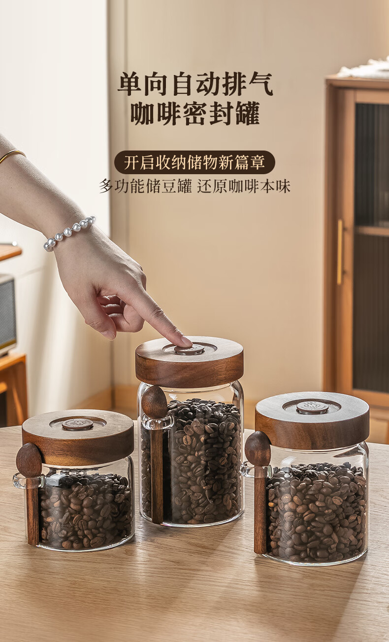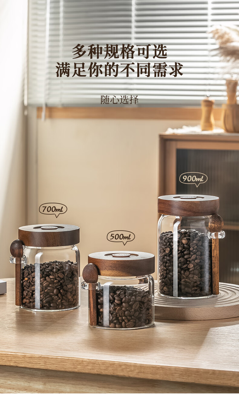 Genasi coffee bean powder special glass sealed jar high-value automatic exhaust storage jar food-grade tea jar with spoon bottle
