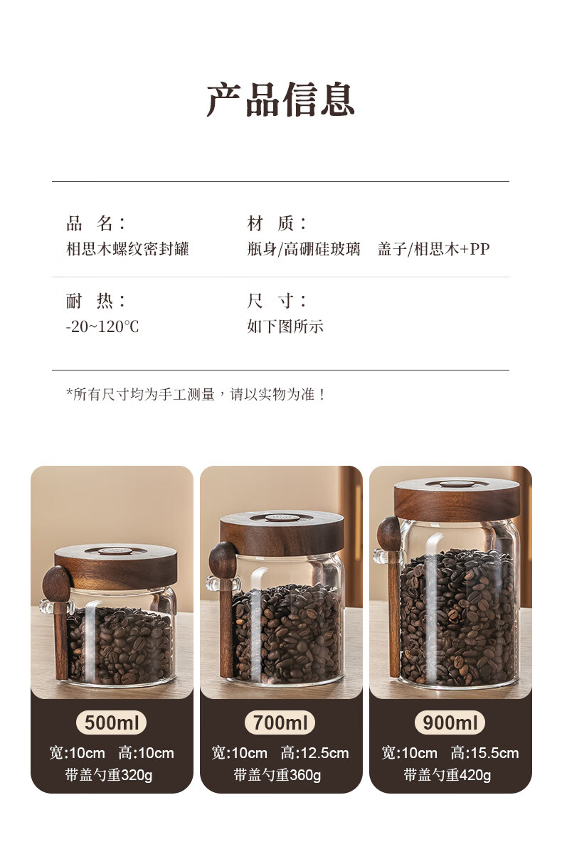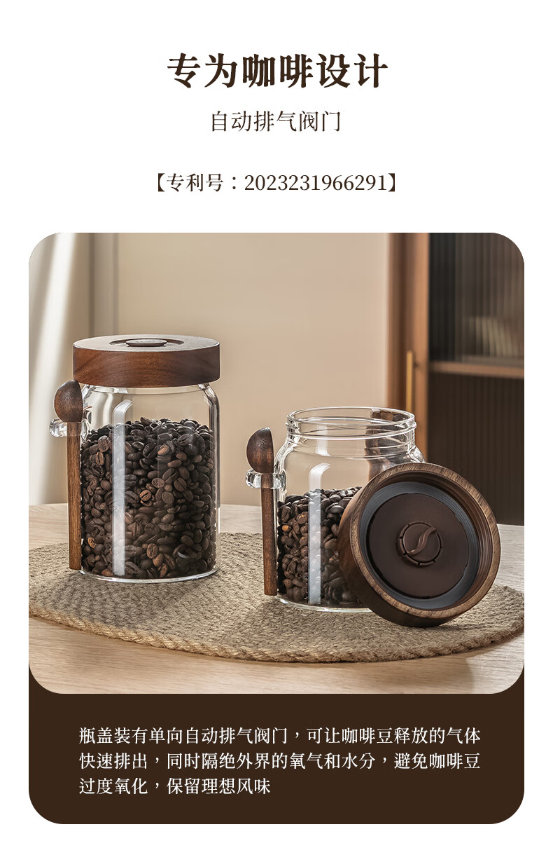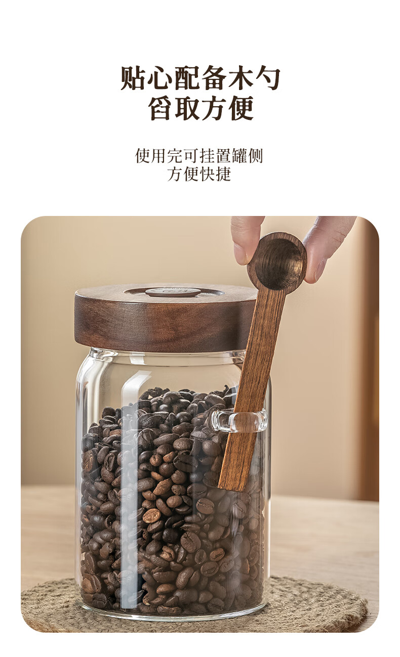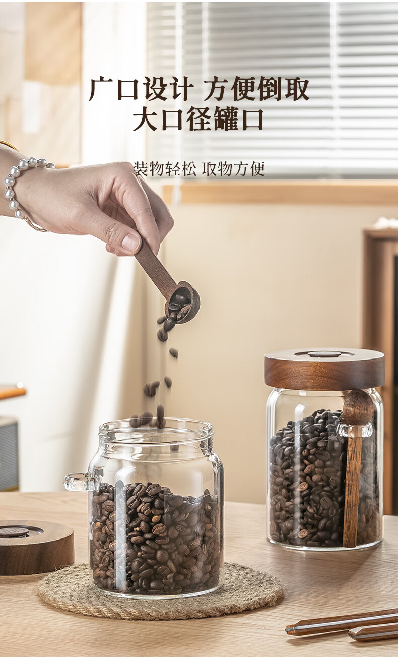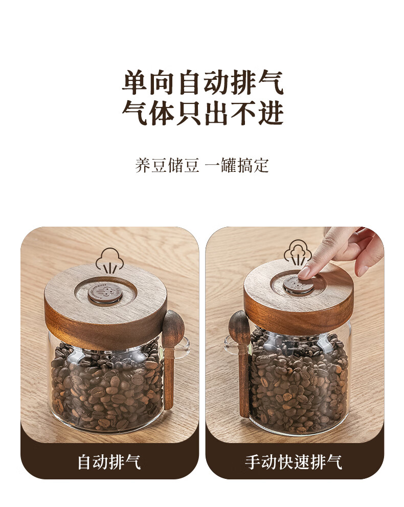 Genasi coffee bean powder special glass sealed jar high-value automatic exhaust storage jar food-grade tea jar with spoon bottle