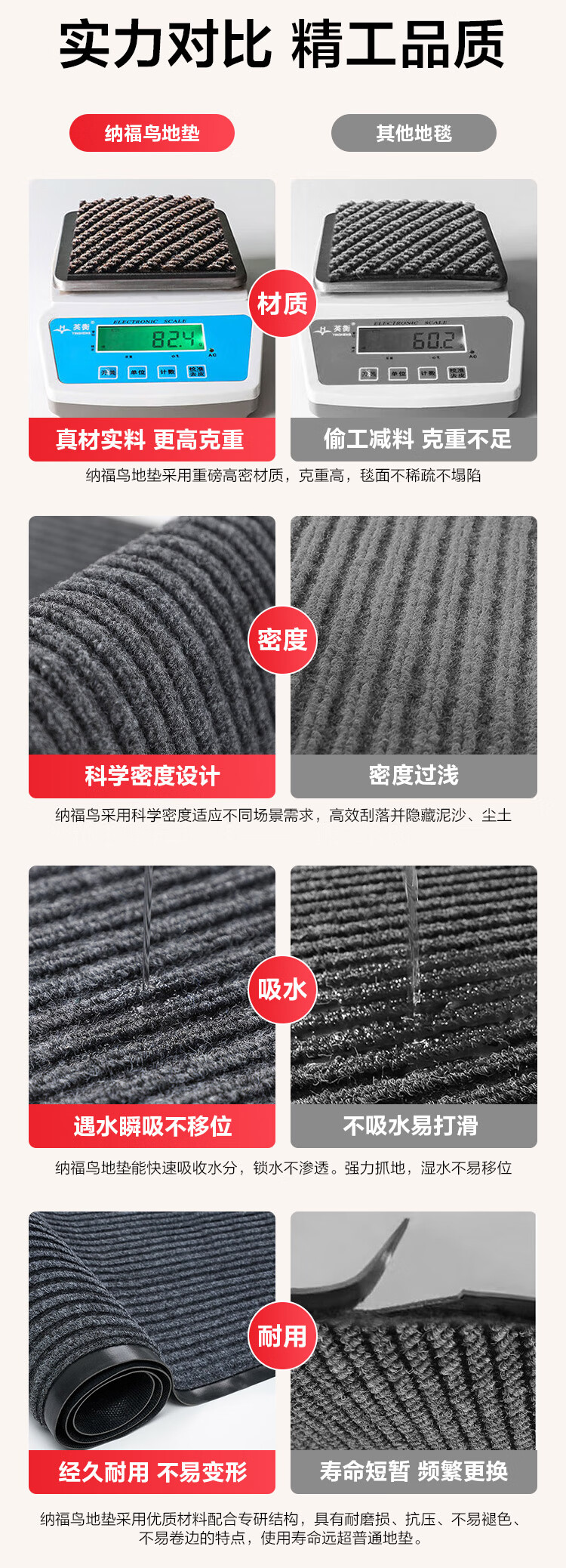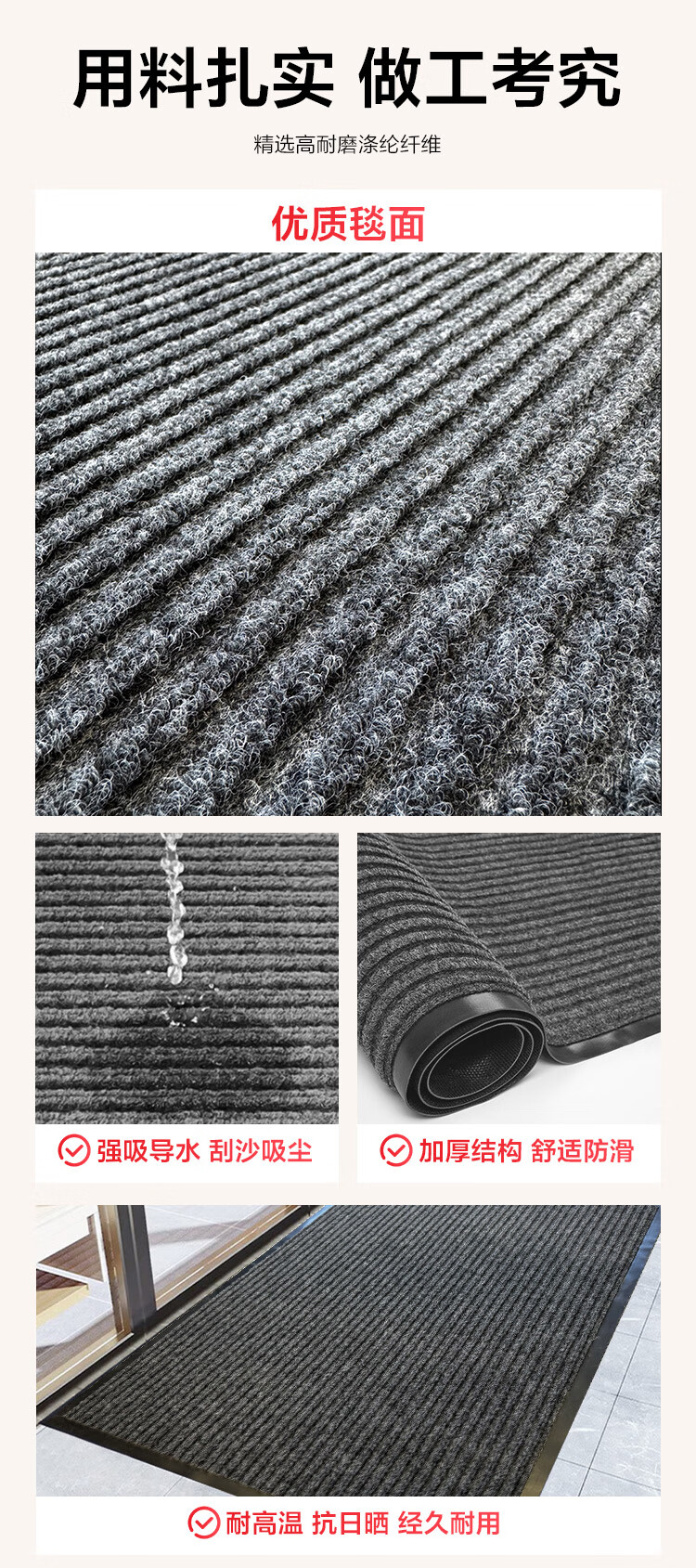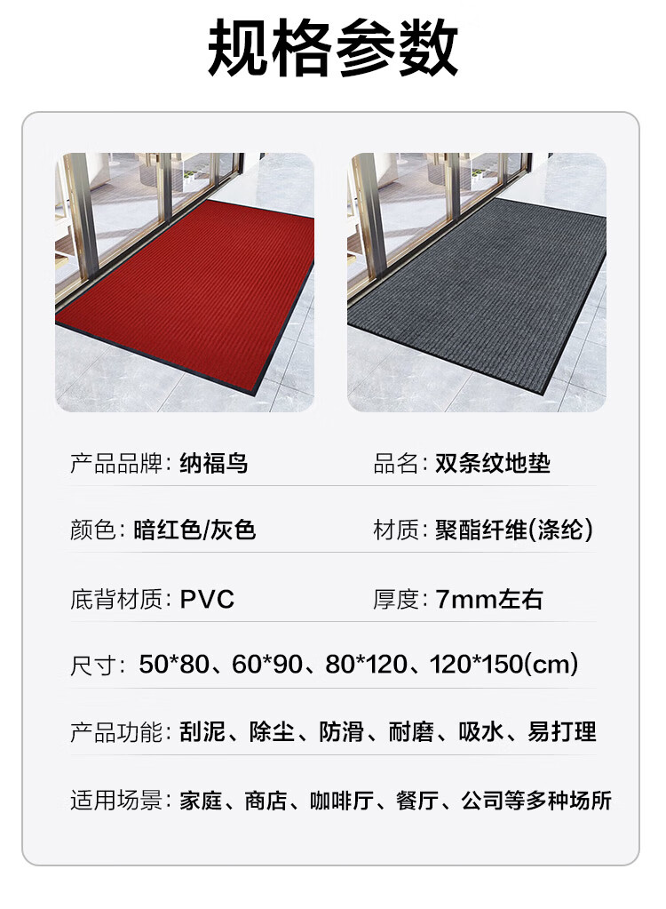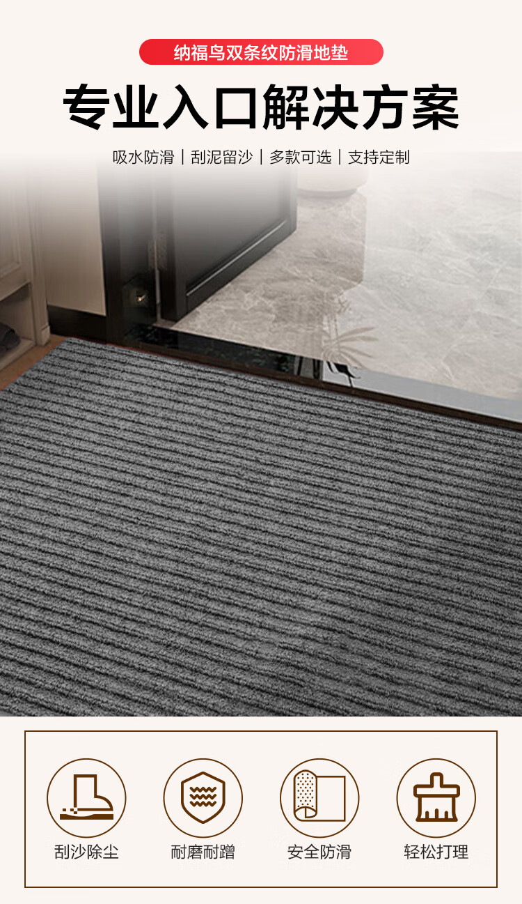 Nafuniao door mats are dust-repellent, waterproof, anti-fouling and wear-resistant, double-striped anti-slip floor mats 50*80cm gray
