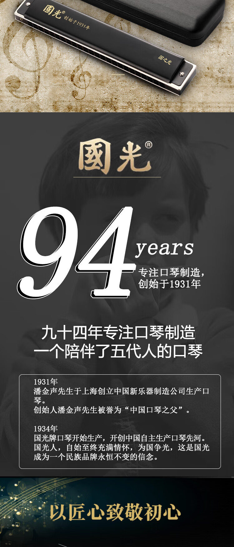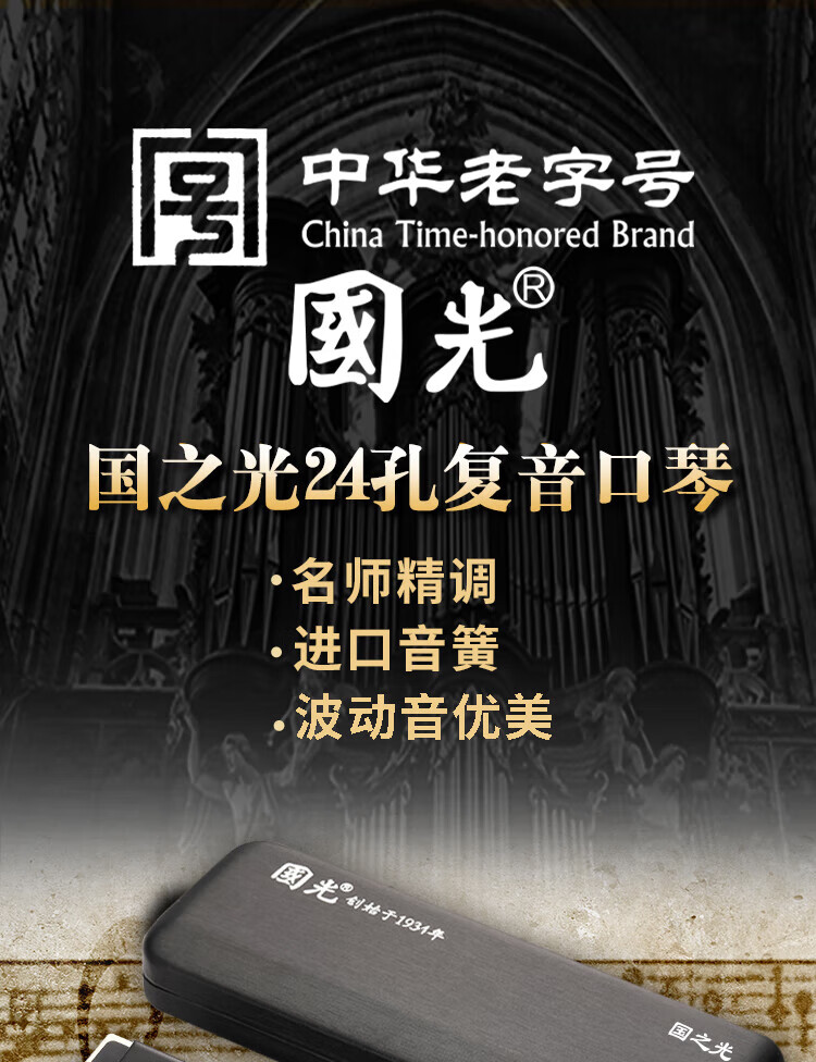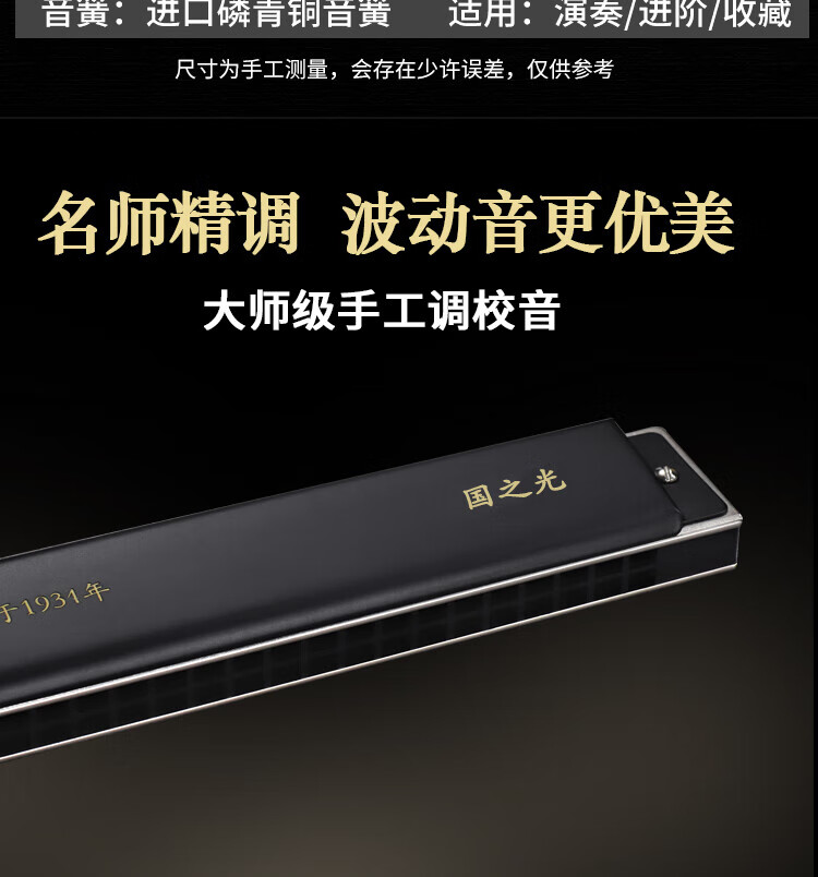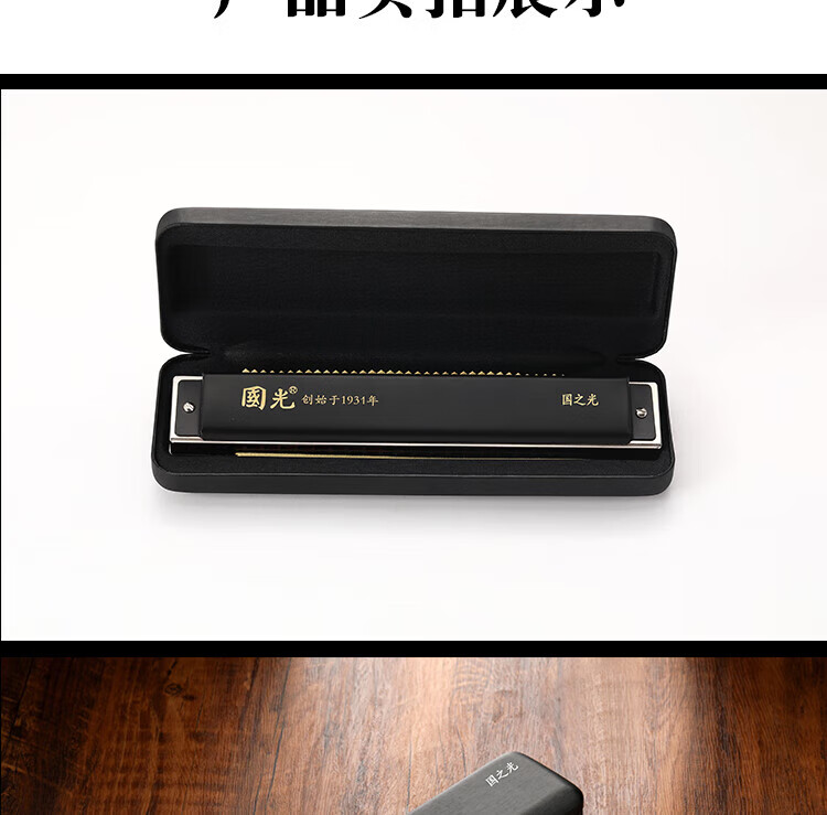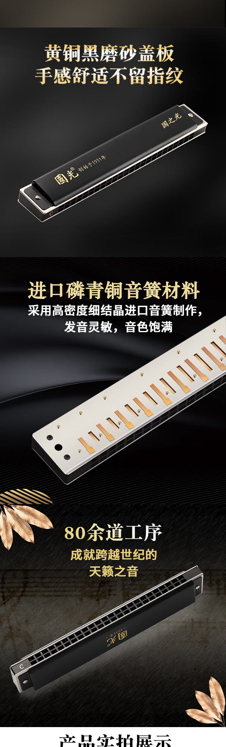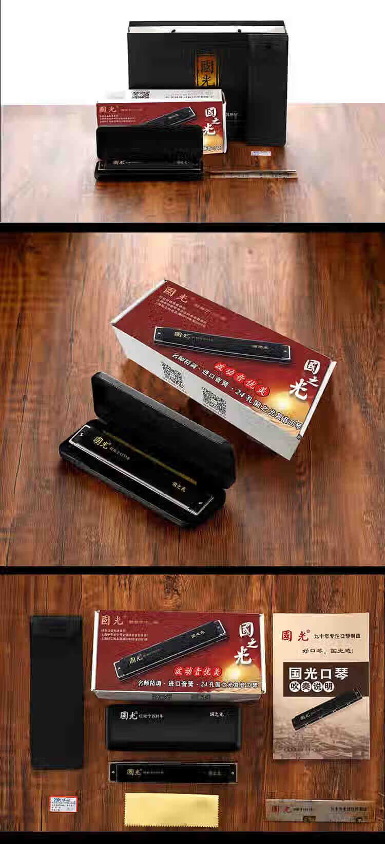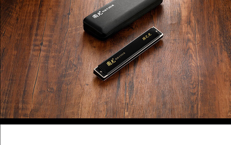 Guoguang 24-hole Guozhiguang imported gong polyphonic harmonica (matte black, wave tone, with teaching materials, glasses case)