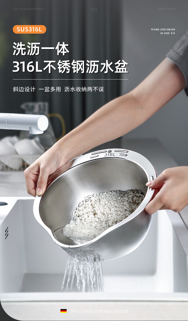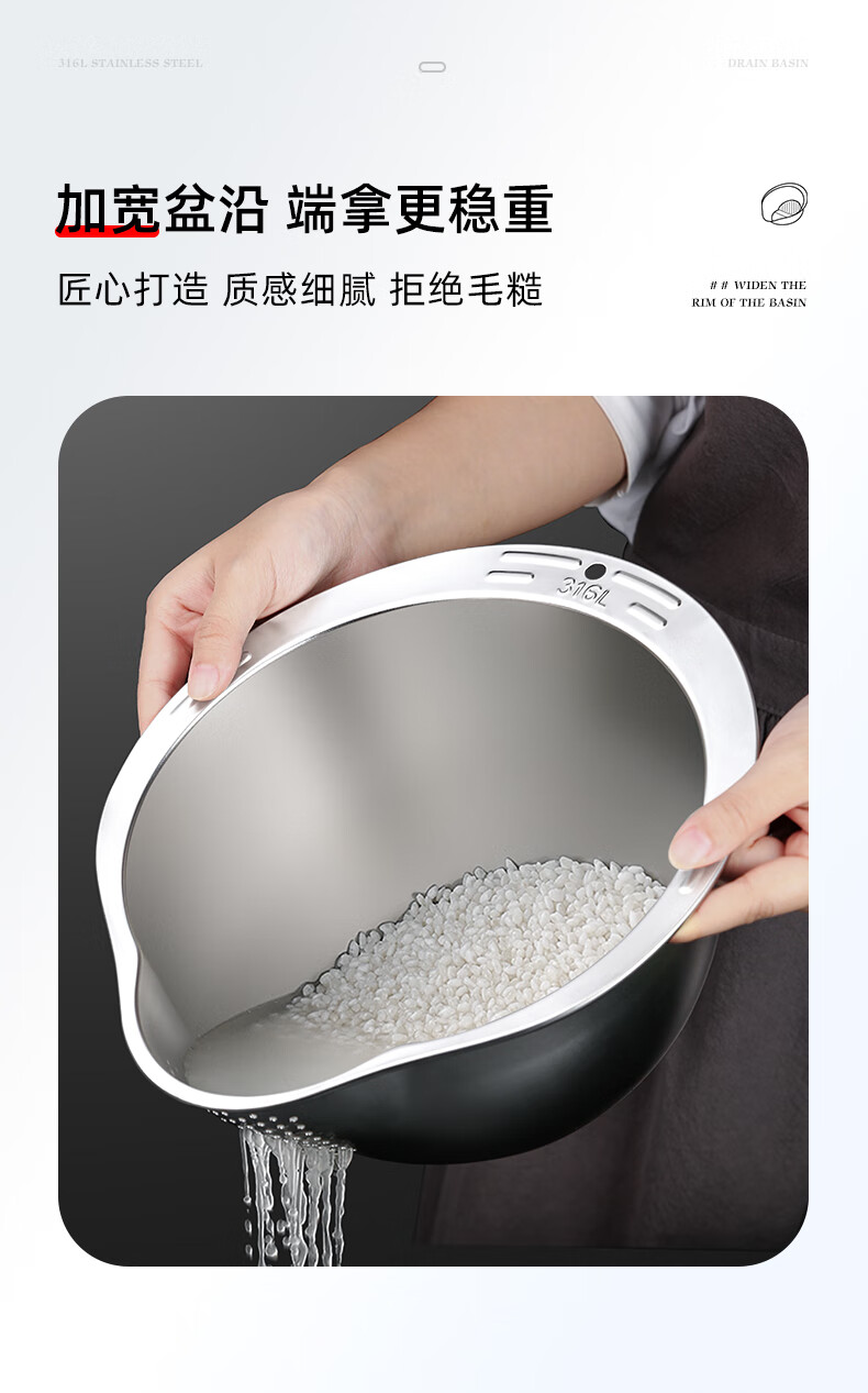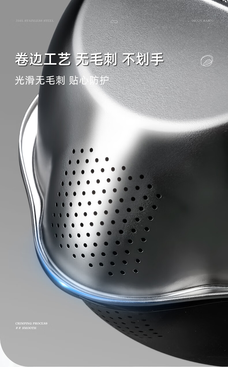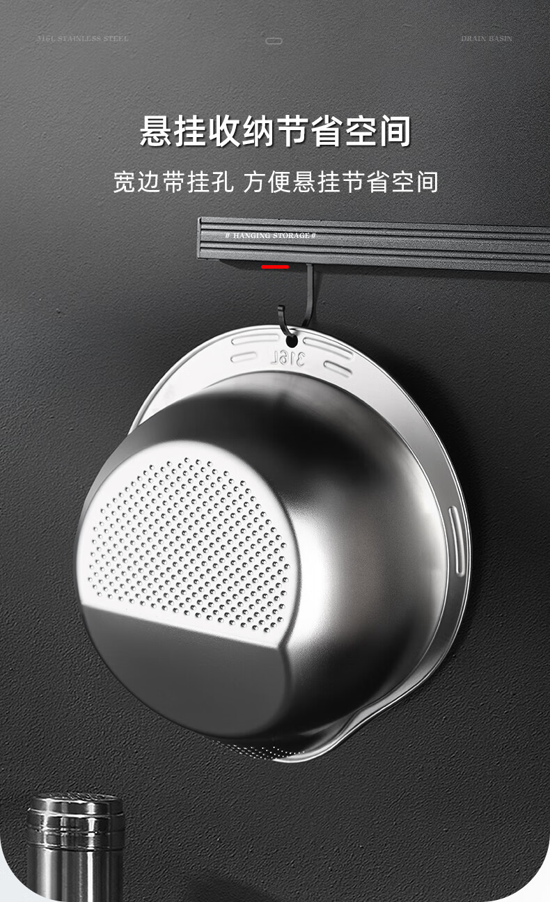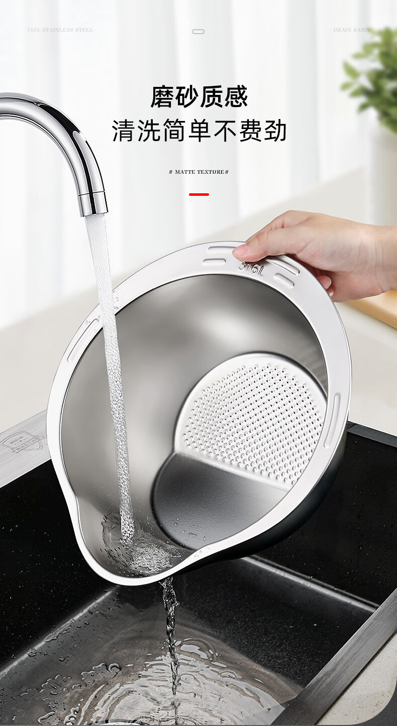 Newair 316L stainless steel drain basket rice cleaning artifact kitchen basin drain basin rice basin filter water food grade thickening