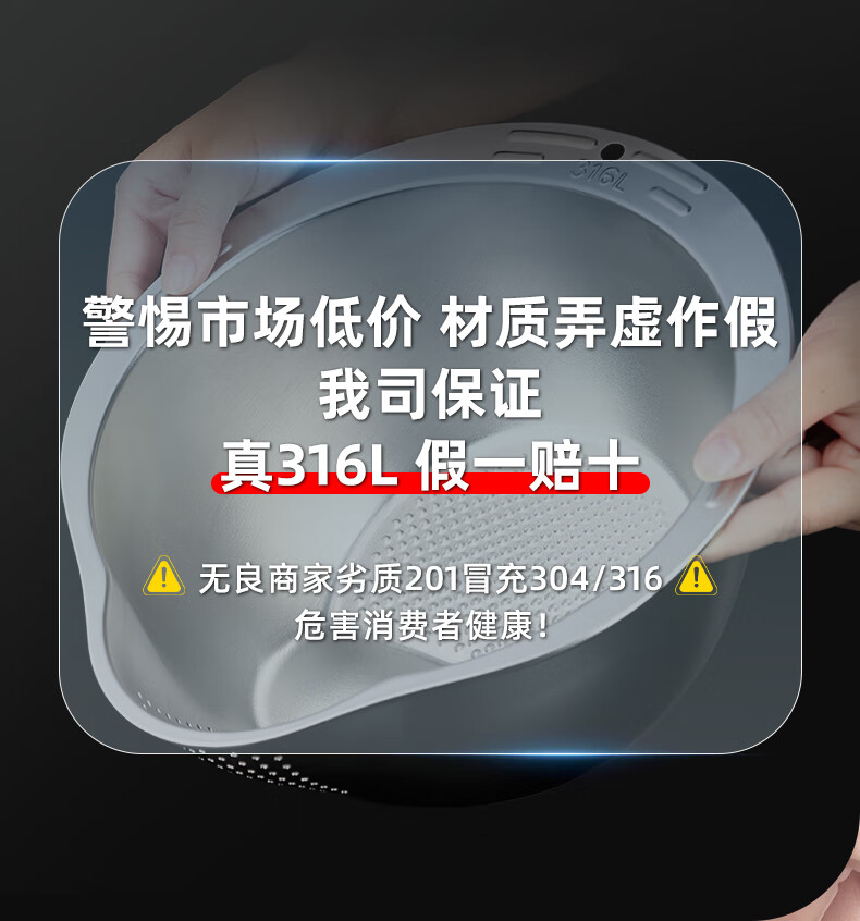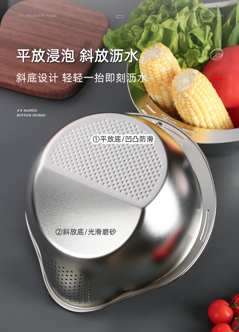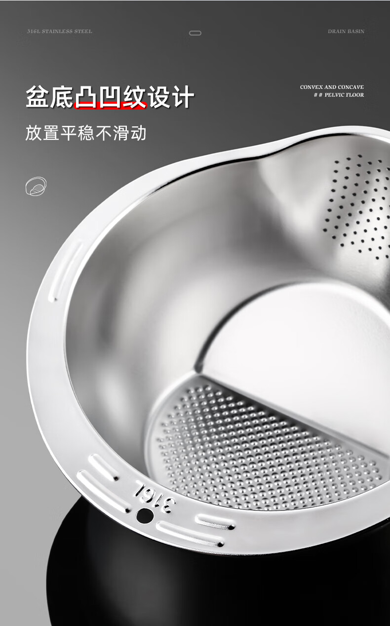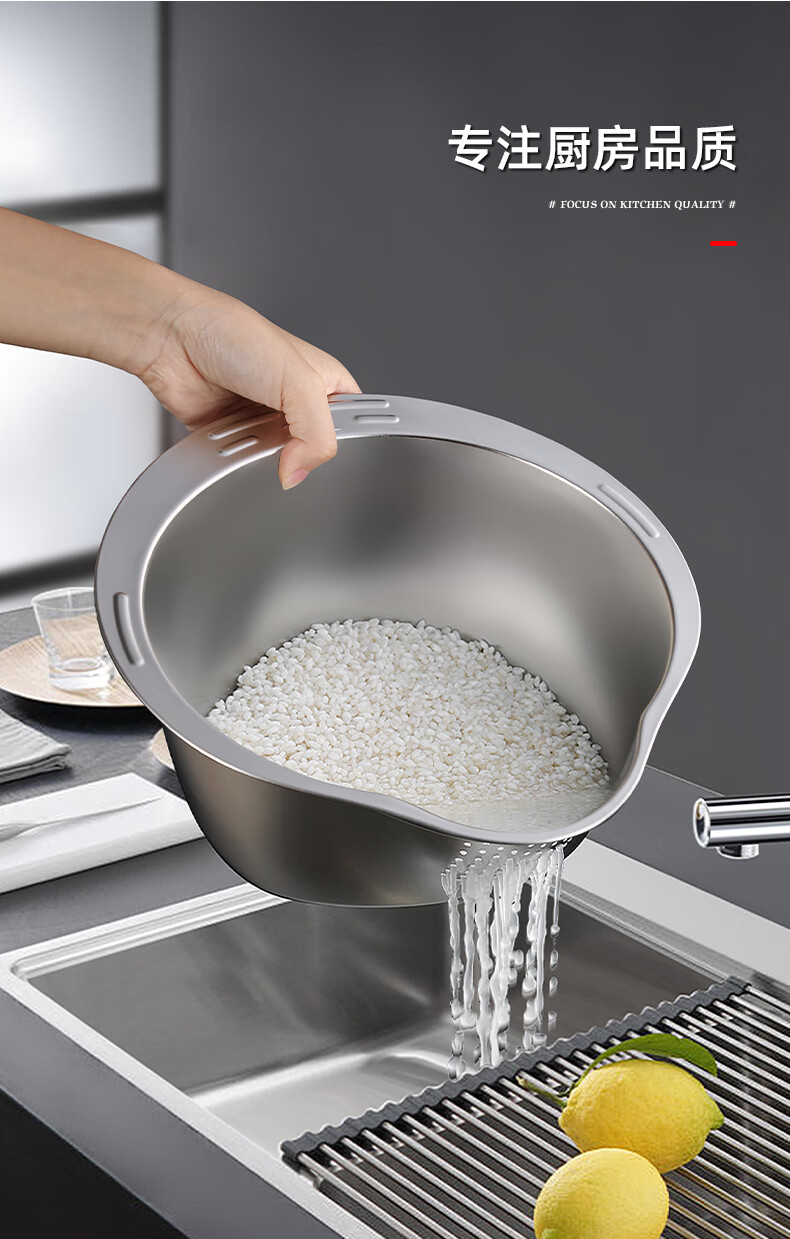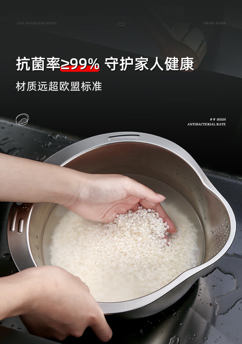Newair 316L stainless steel drain basket rice cleaning artifact kitchen basin drain basin rice basin filter water food grade thickening