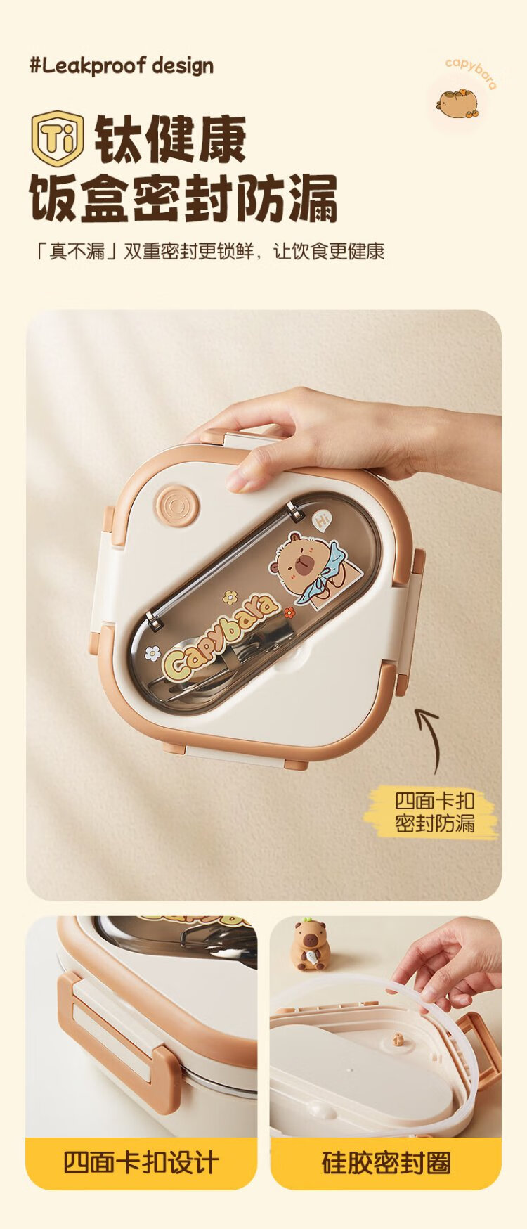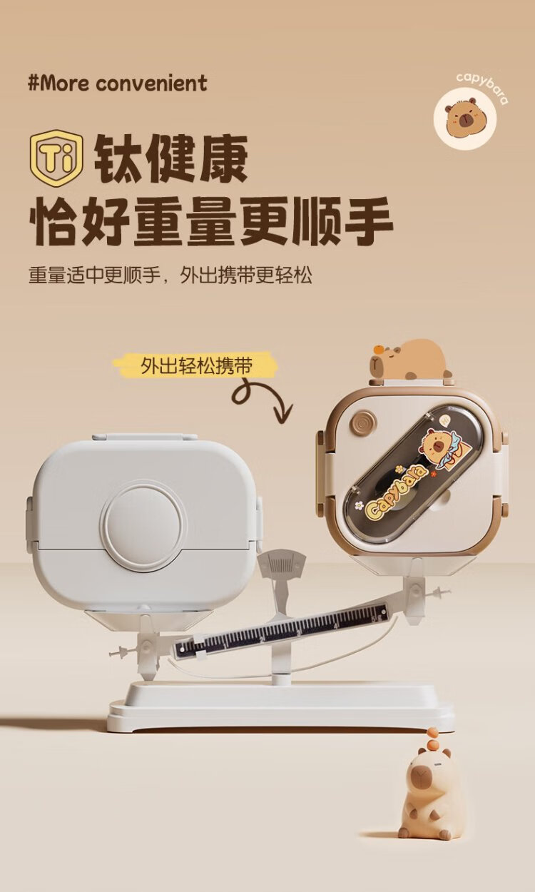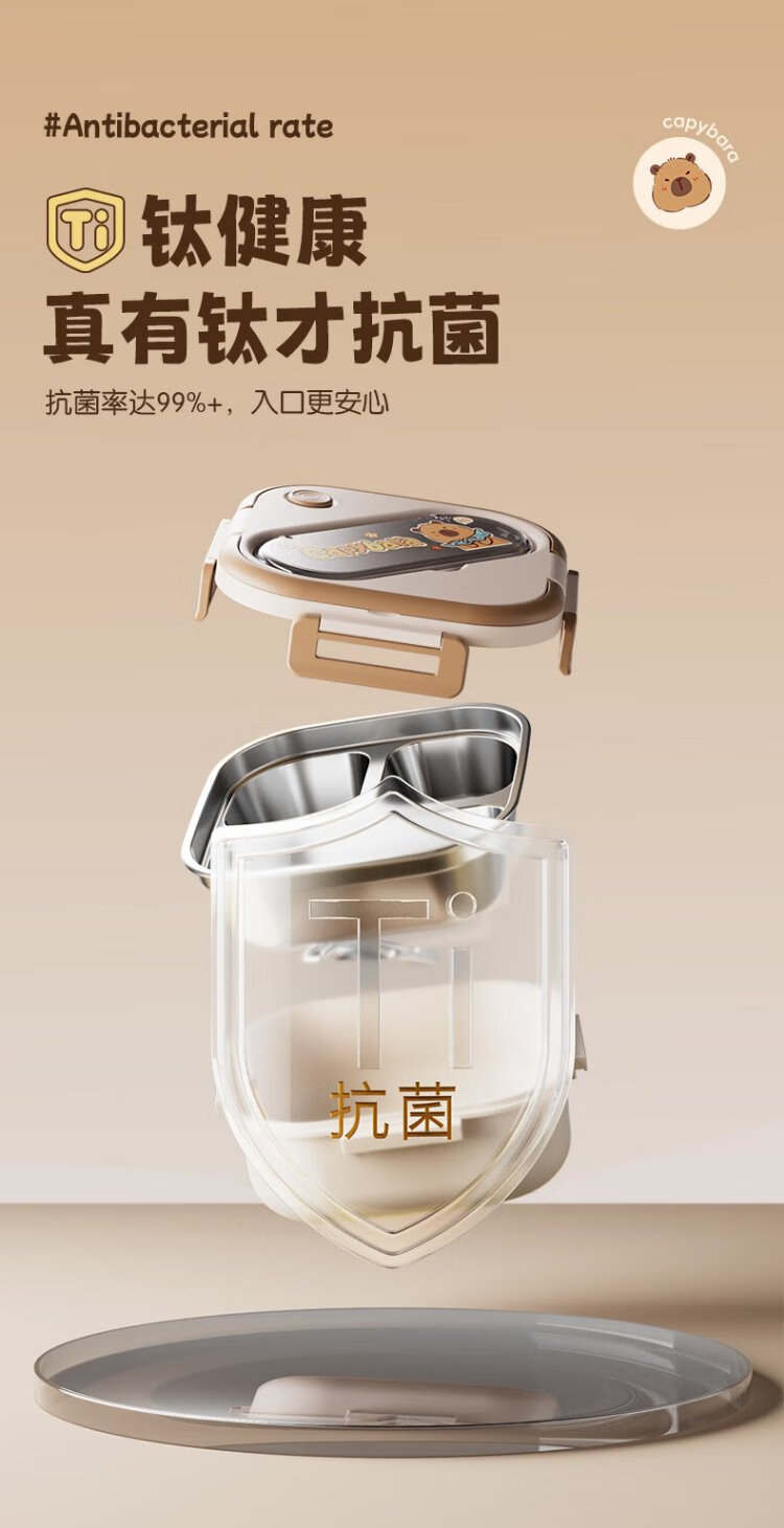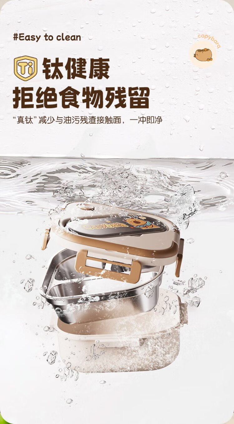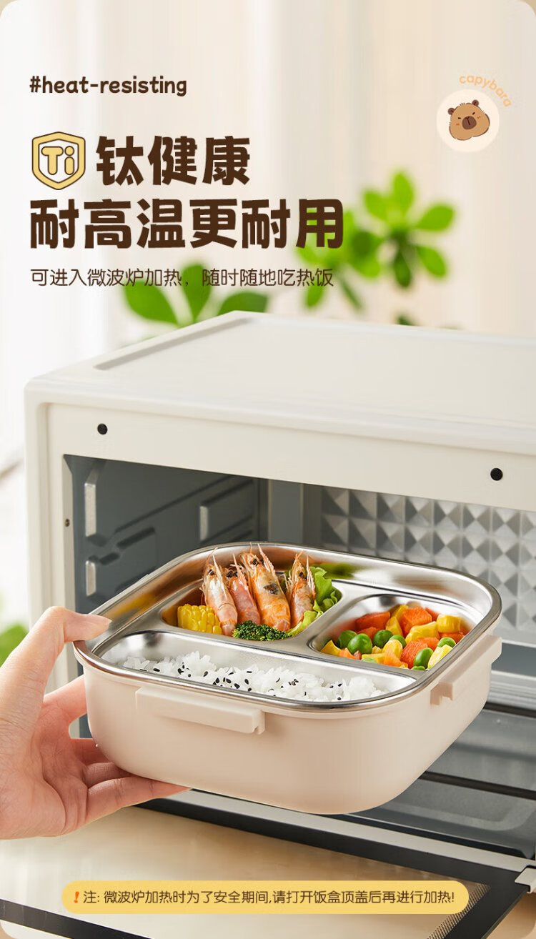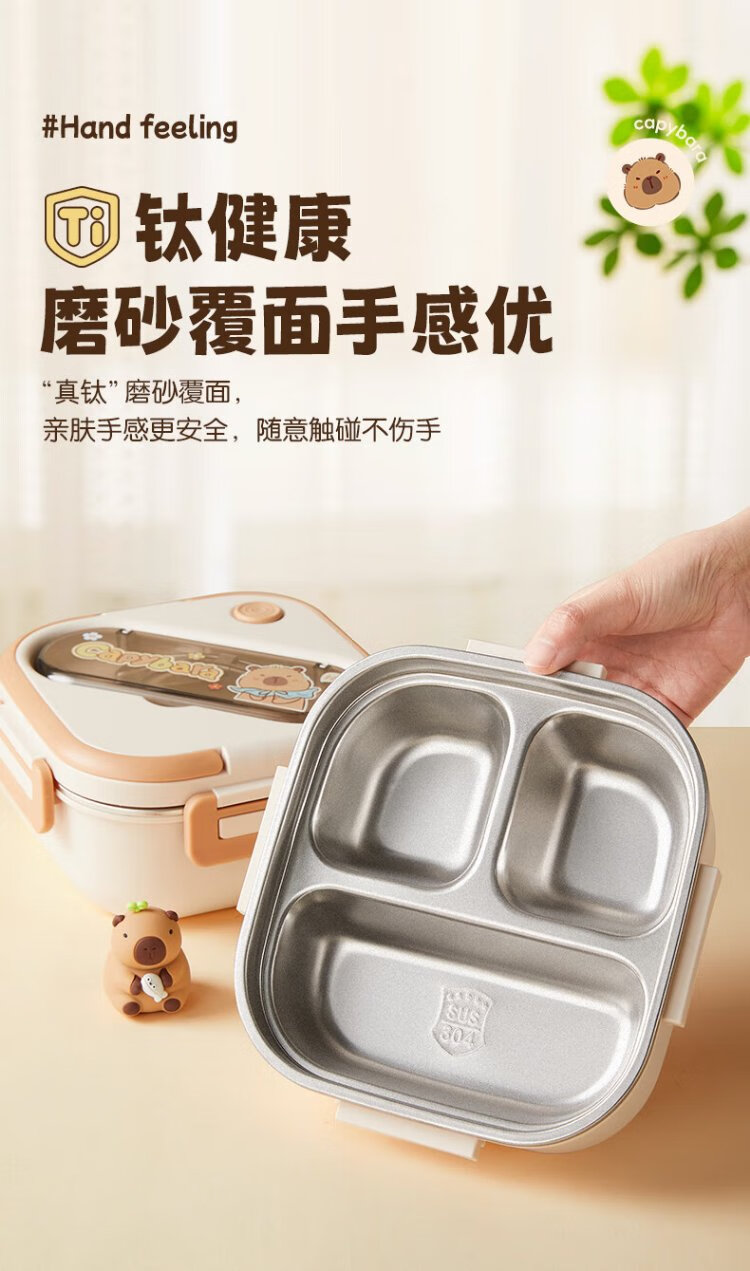 Double gun titanium healthy stainless steel antibacterial lunch box for primary school students, microwave lunch box, insulated lunch box for office workers and children 1L