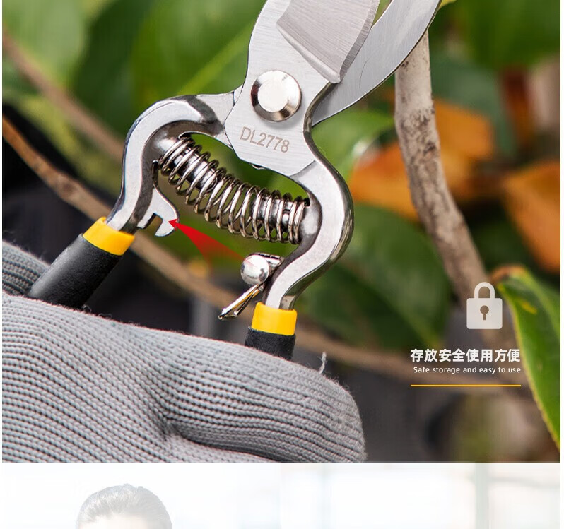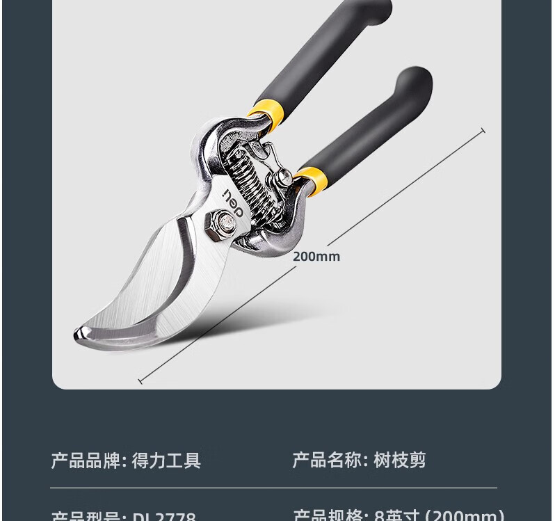 Deli pruning scissors, flower pruners, fruit tree gardening pruners, labor-saving pruning scissors, flower pruners, 8 inches DL2778