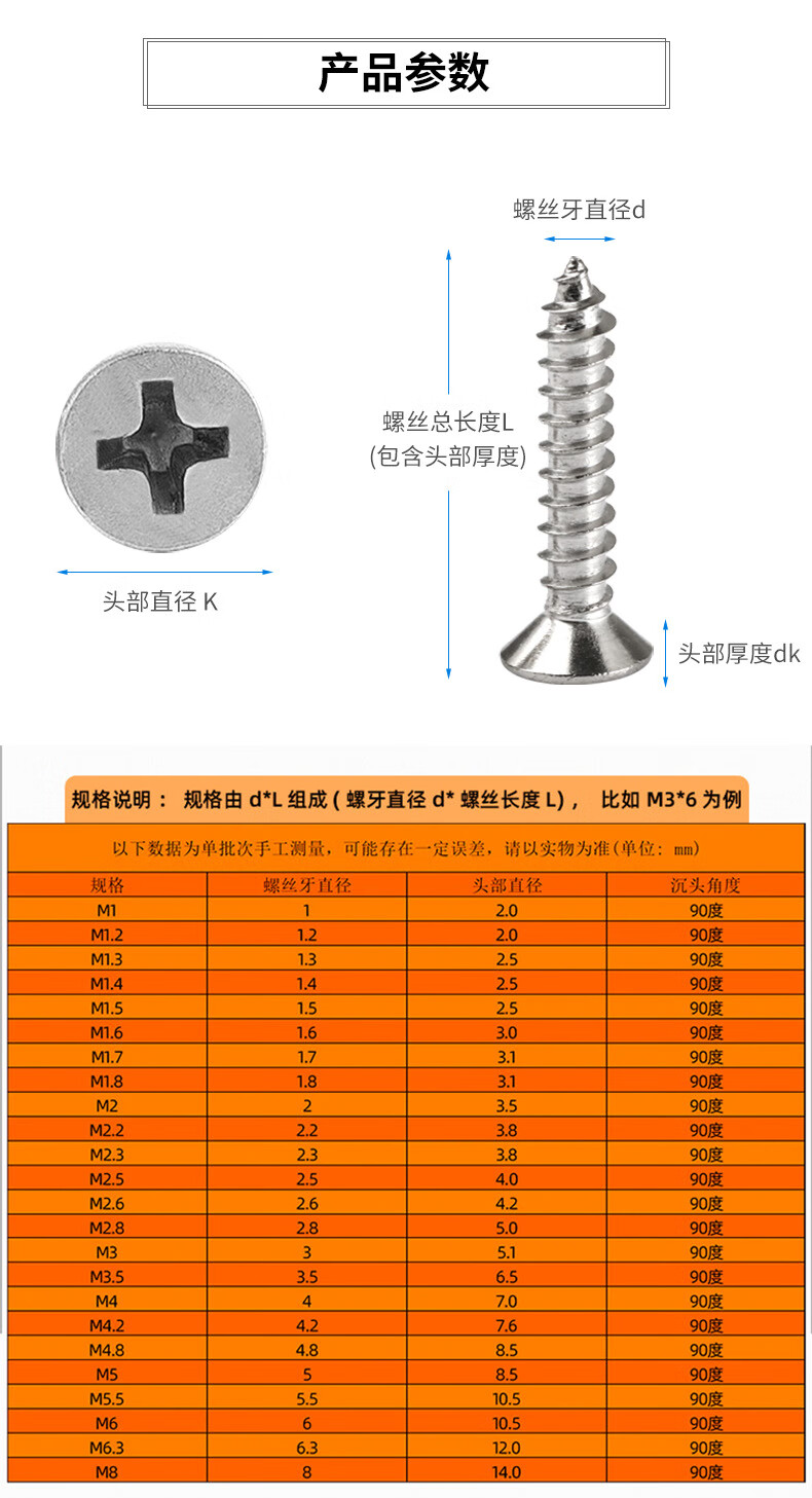 Tianli 304 stainless steel self-tapping screws cross countersunk head flat head screws extended KA wood screws M3*10 (200 pieces)