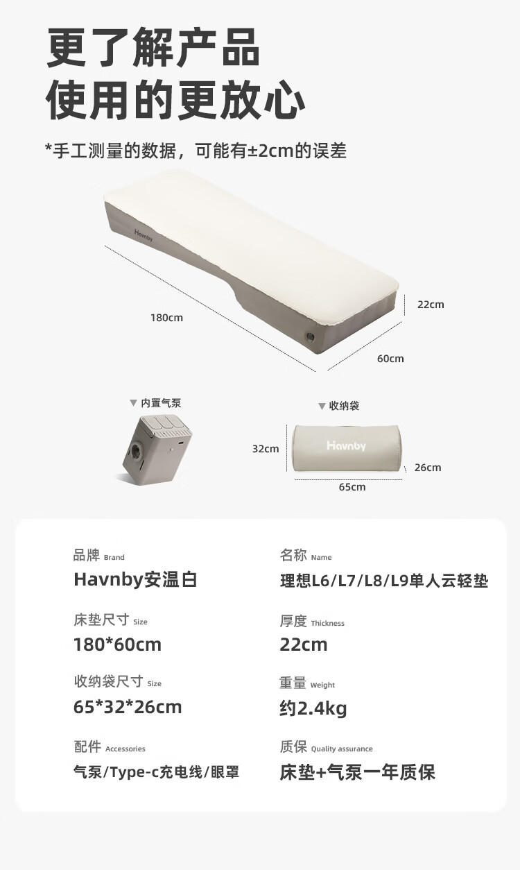 Havnby Anwen white is suitable for the ideal L6789 car self-inflating lunch break car sleeping mattress for the passenger in the car cloud light cushion