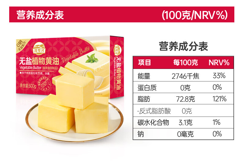 Wanqinhe unsalted vegetable butter 500g anhydrous 0 trans fatty acid 0 sodium steak snowflake crisp butter rice cake hot pot