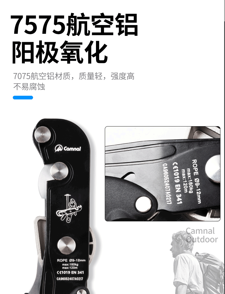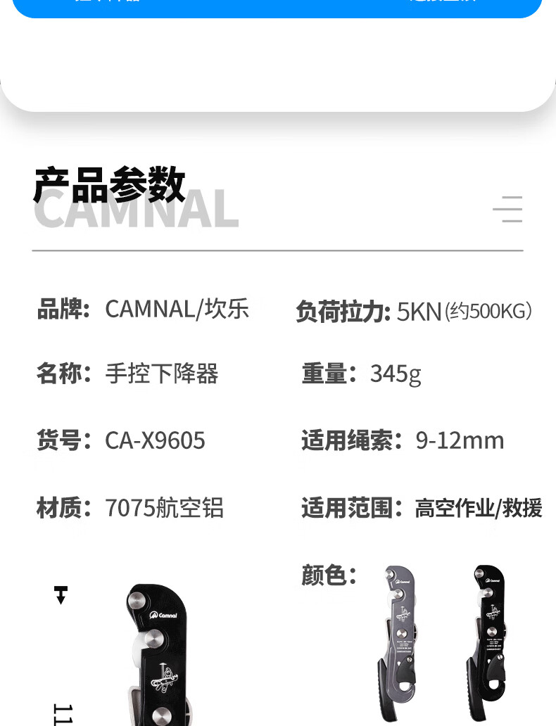 Kanle aerial work rope stop descender safety rope manual descent self-locking device speed descent slowdown device Jingcang stop descender