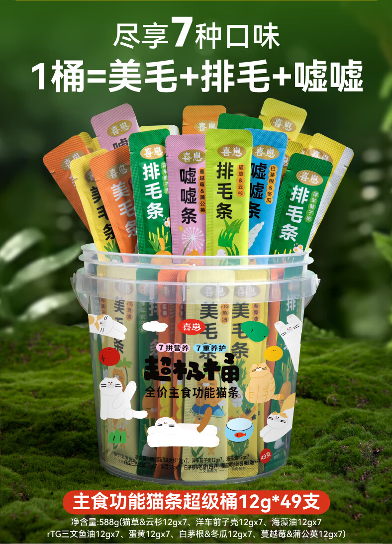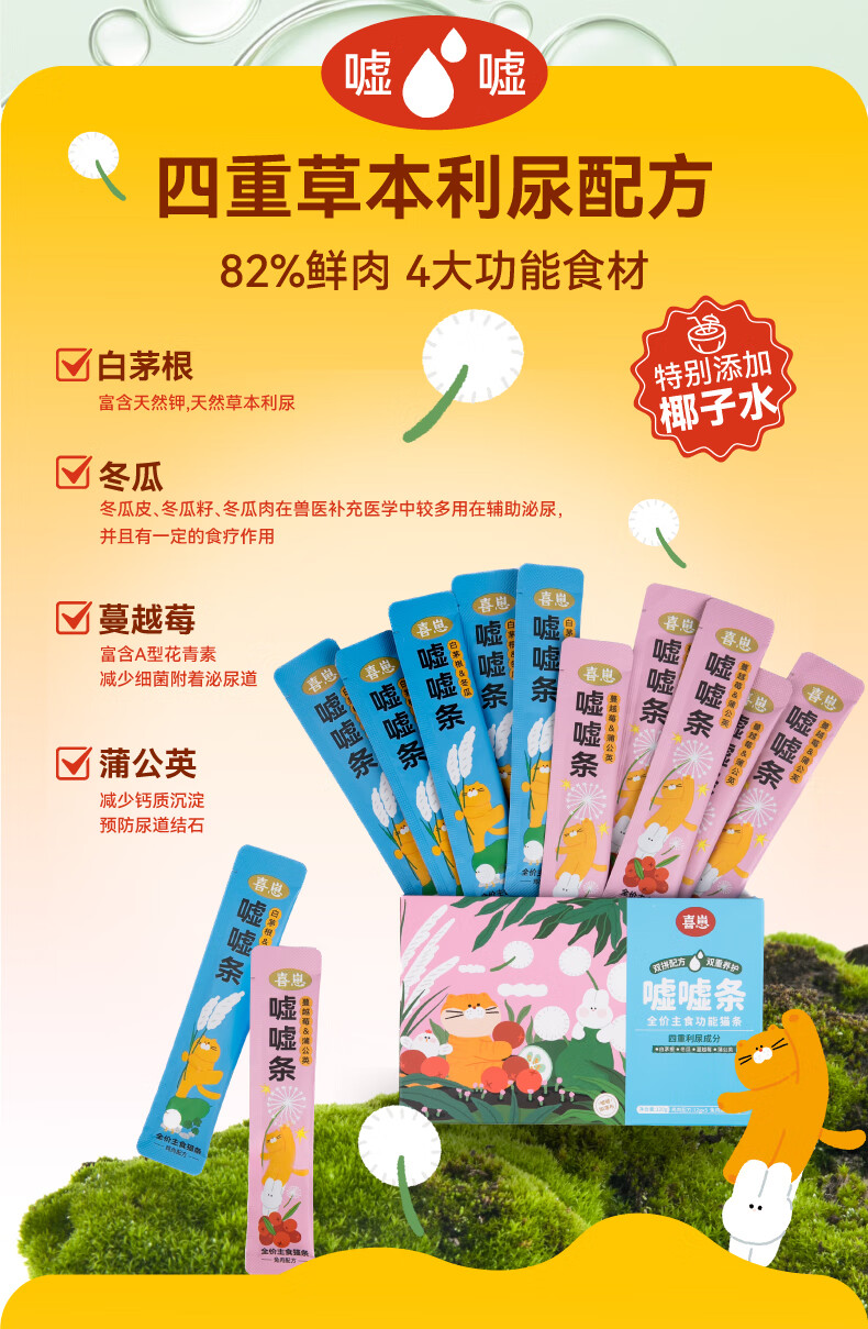 Xizai's new staple food cat strips wet food peeing strips Imperata Root & Winter Melon + Cranberry & Dandelion 12g*10
