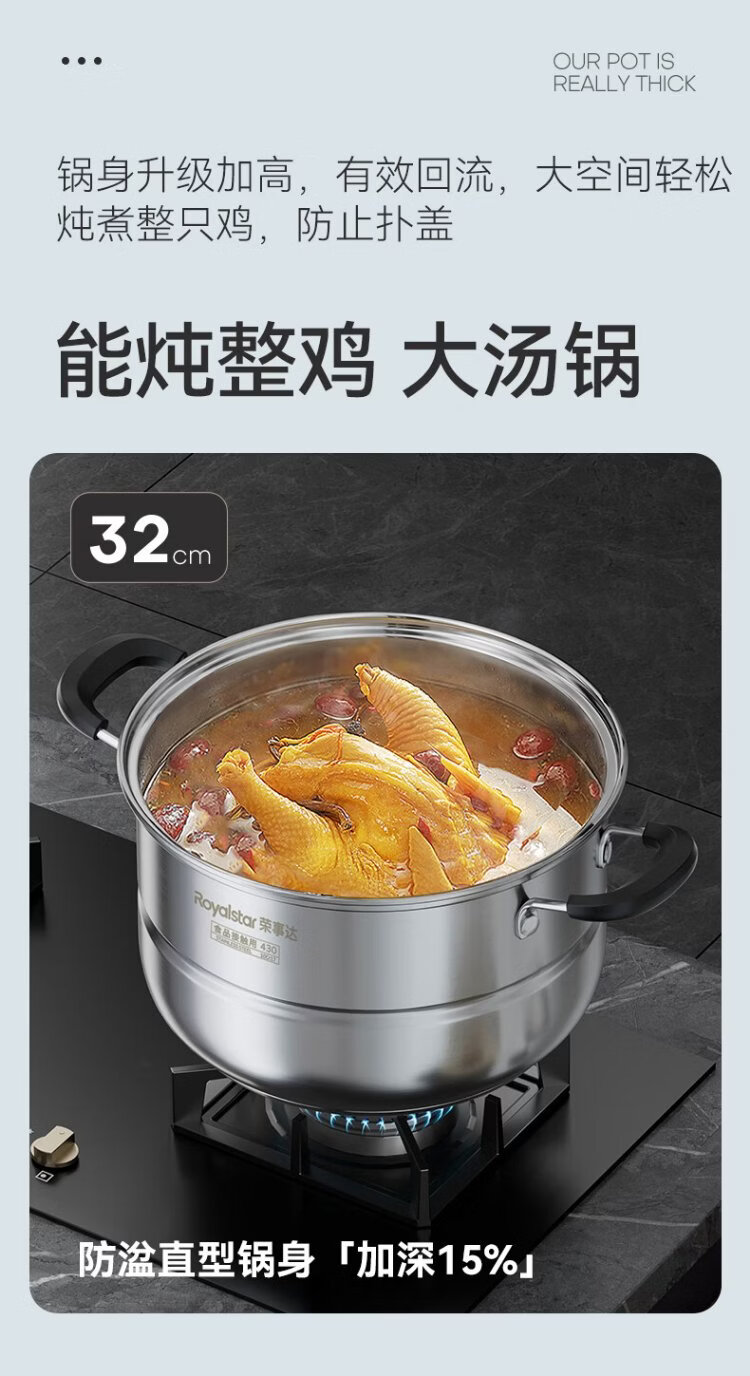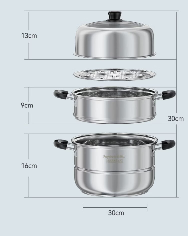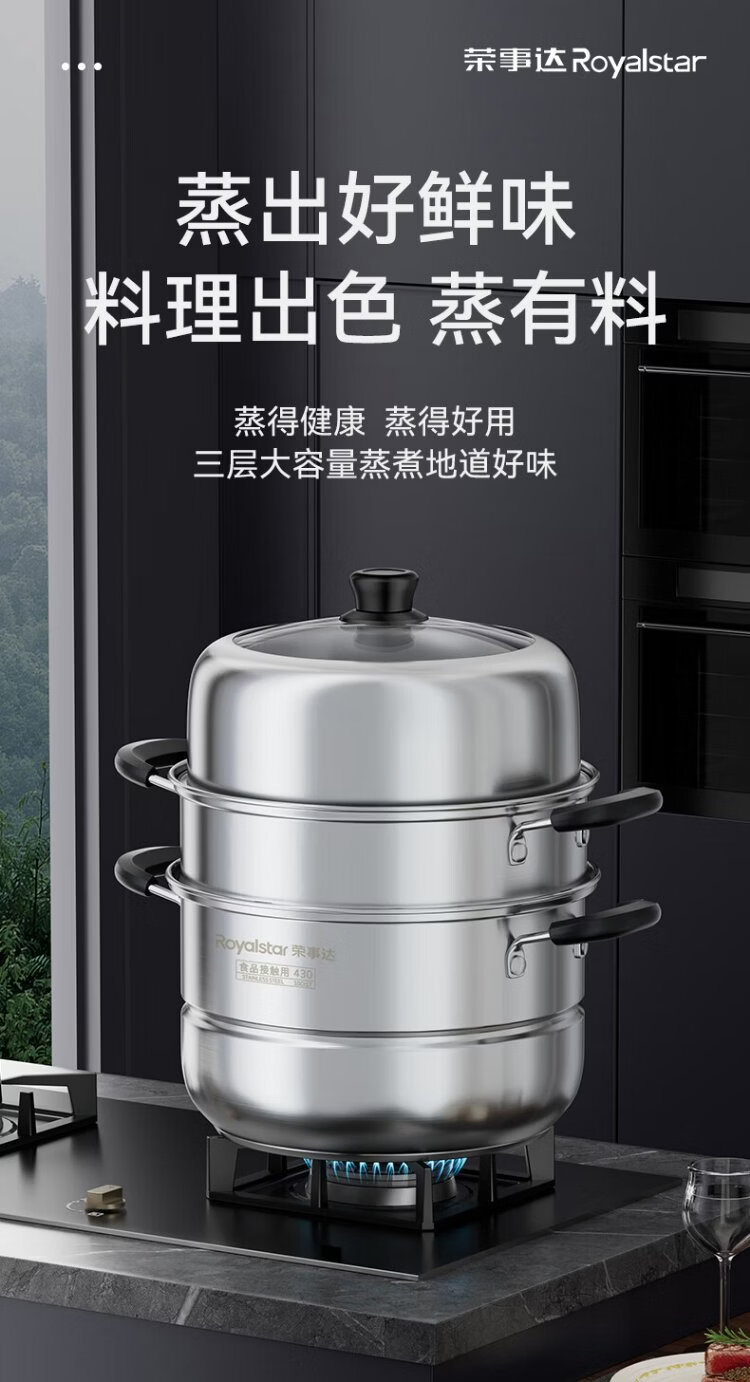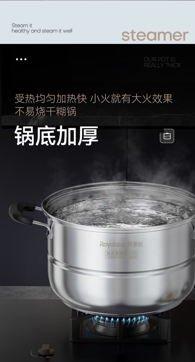Royalstar steamer household stainless steel stew and steam all-in-one soup pot large capacity double-layer gas induction cooker universal steamer 28cm