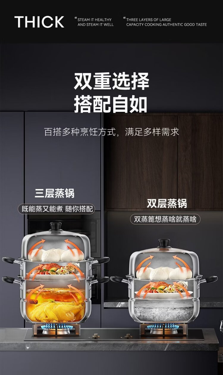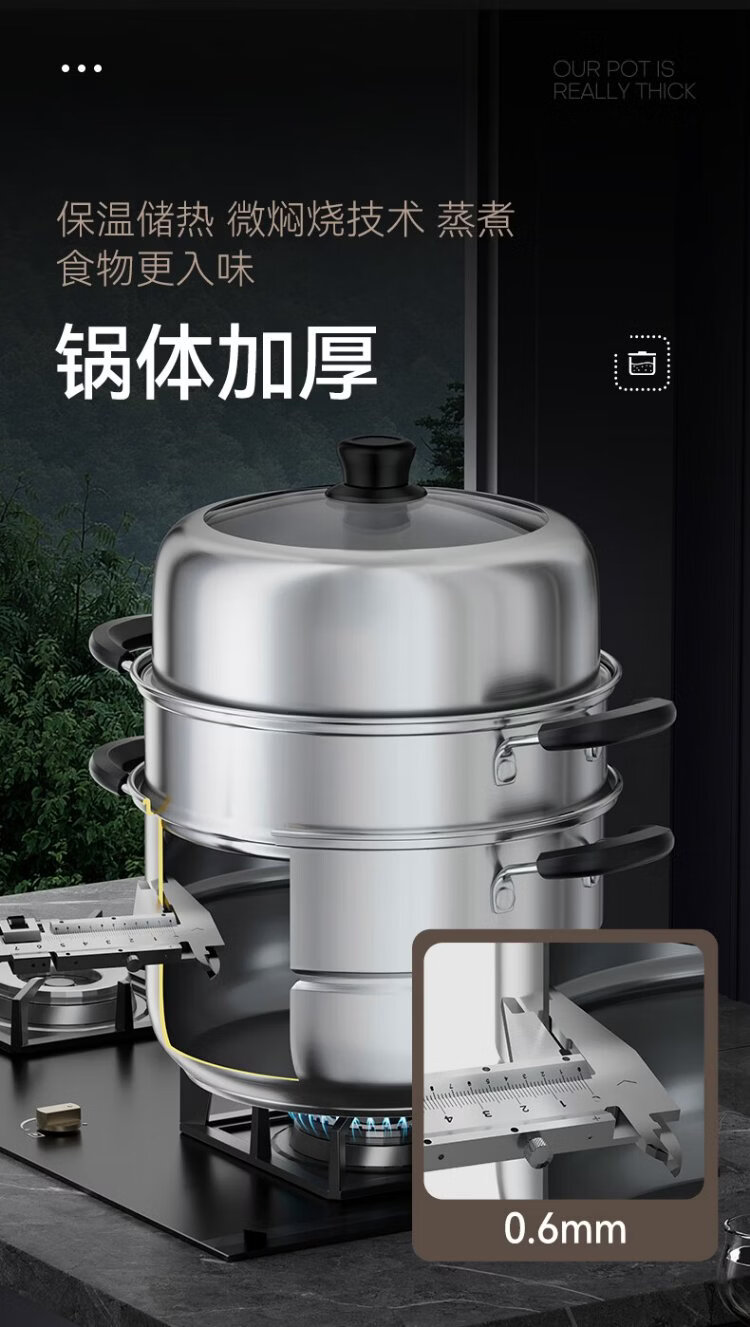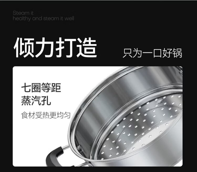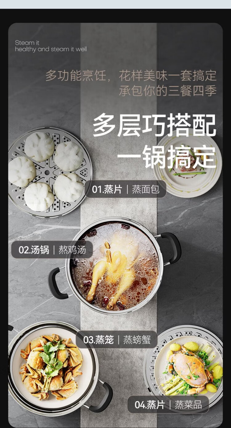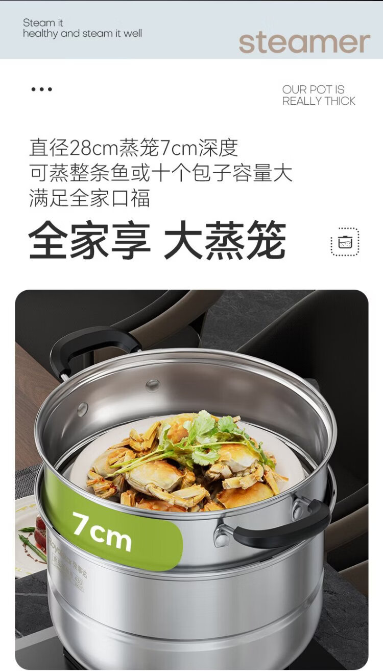 Royalstar steamer household stainless steel stew and steam all-in-one soup pot large capacity double-layer gas induction cooker universal steamer 28cm