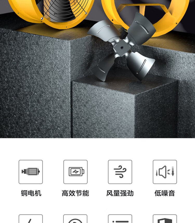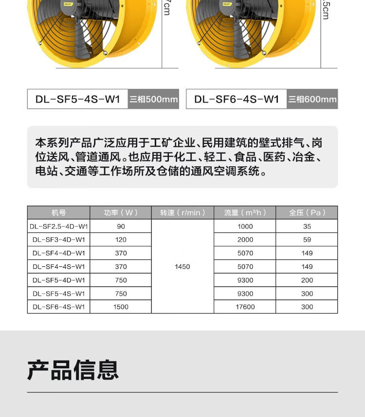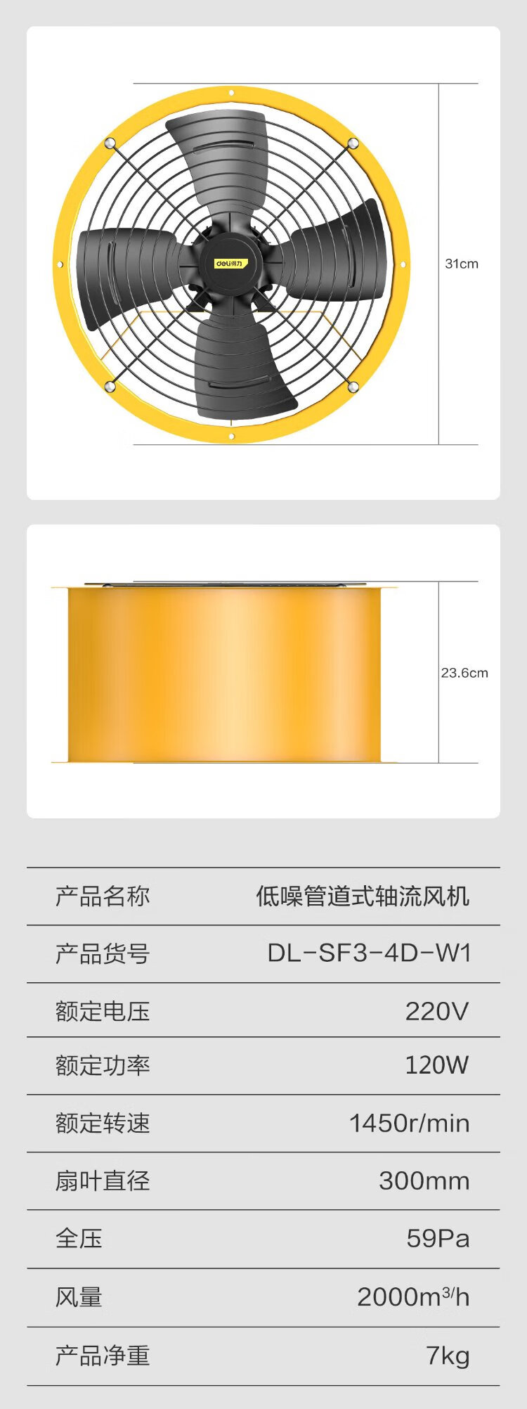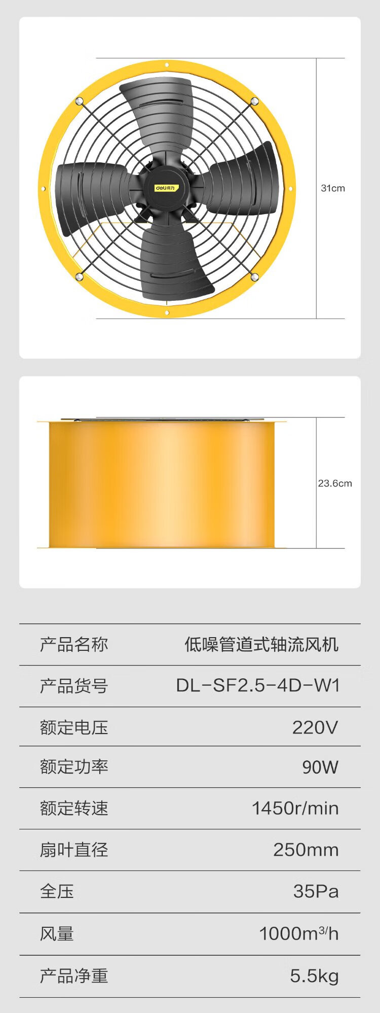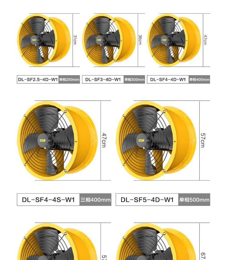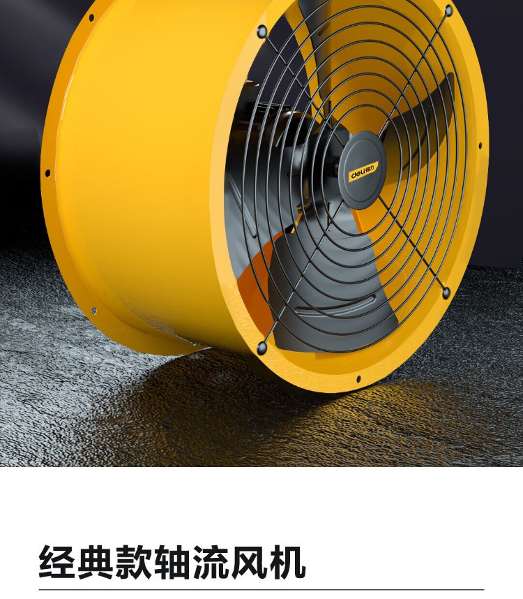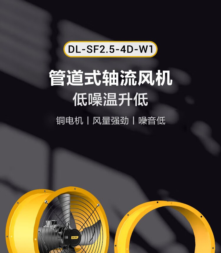 Deli duct axial flow fan 400mm/single phase low noise (yellow) (Taiwan) DL-SF4-4D-W1