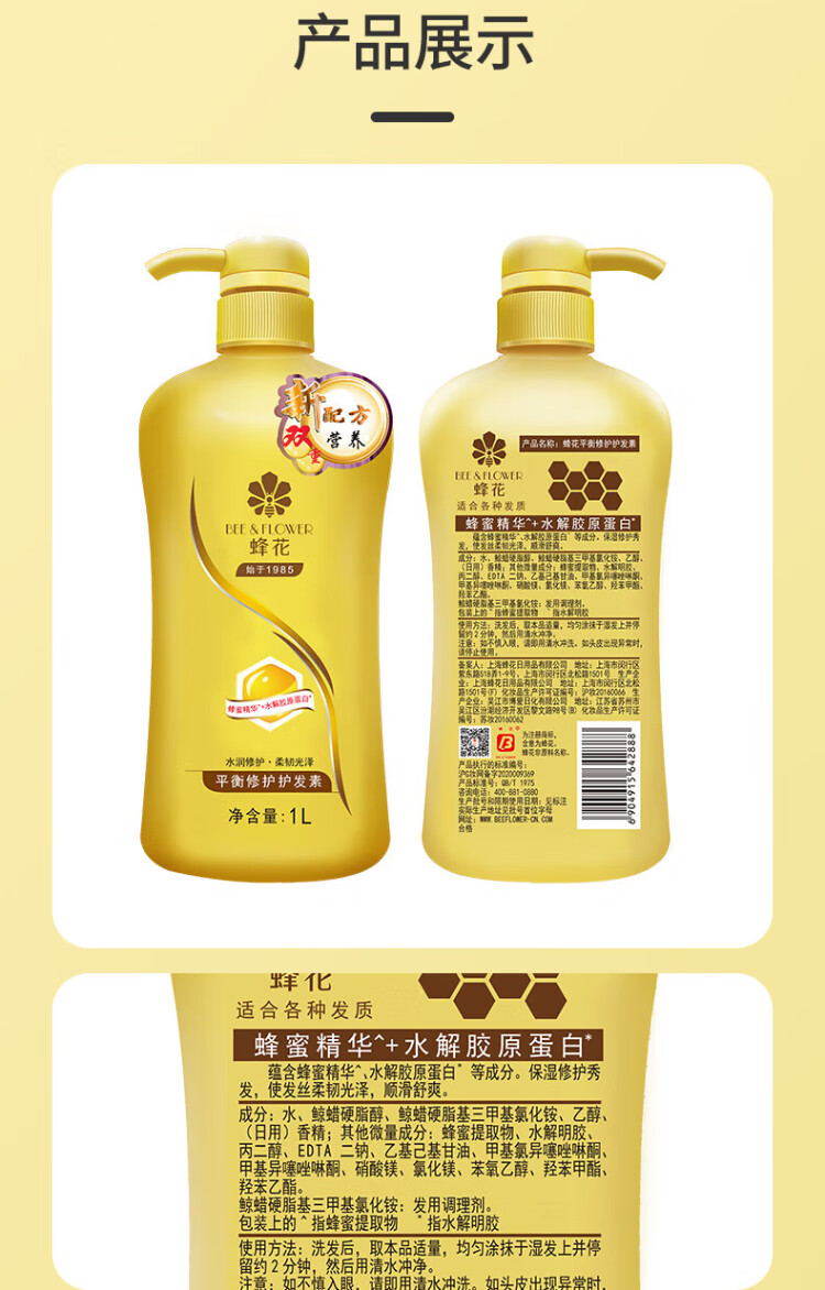 Bee Flower Balancing Repair Conditioner 1L*2 Honey Collagen Repairs Damaged Moisturizing Smooth and Soft