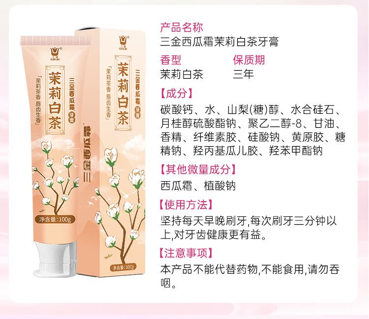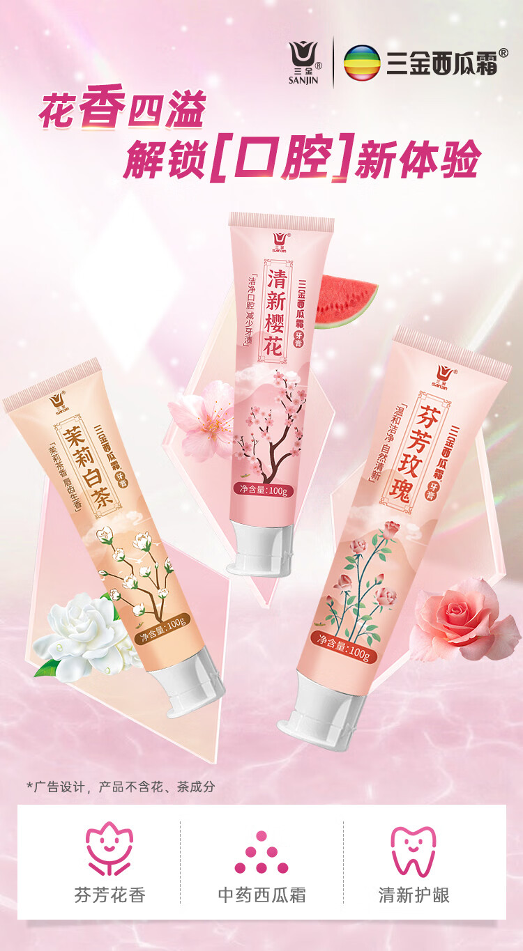 Sanjin Watermelon Cream Toothpaste Guilin Sanjin Toothpaste Oral Ulcer Toothpaste 100g Jasmine White Tea
