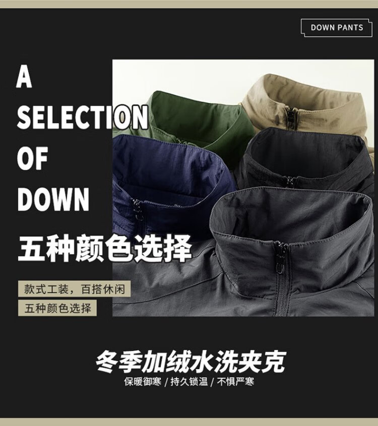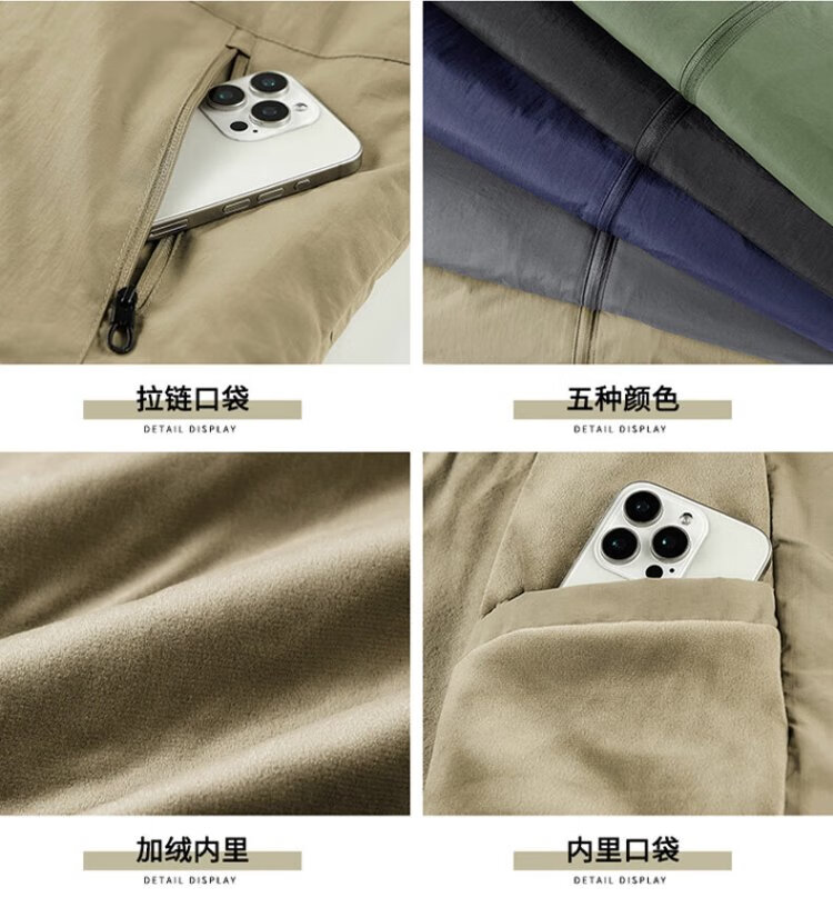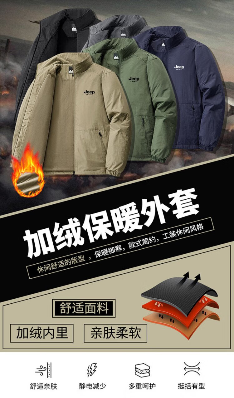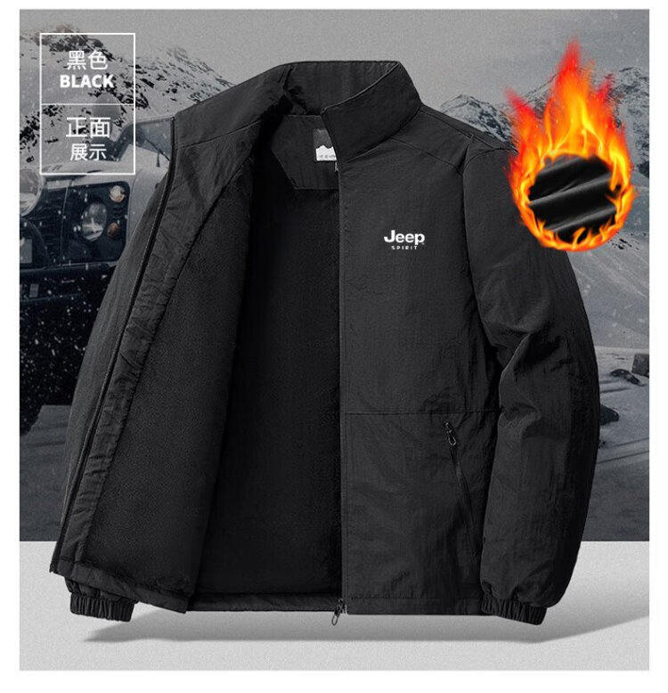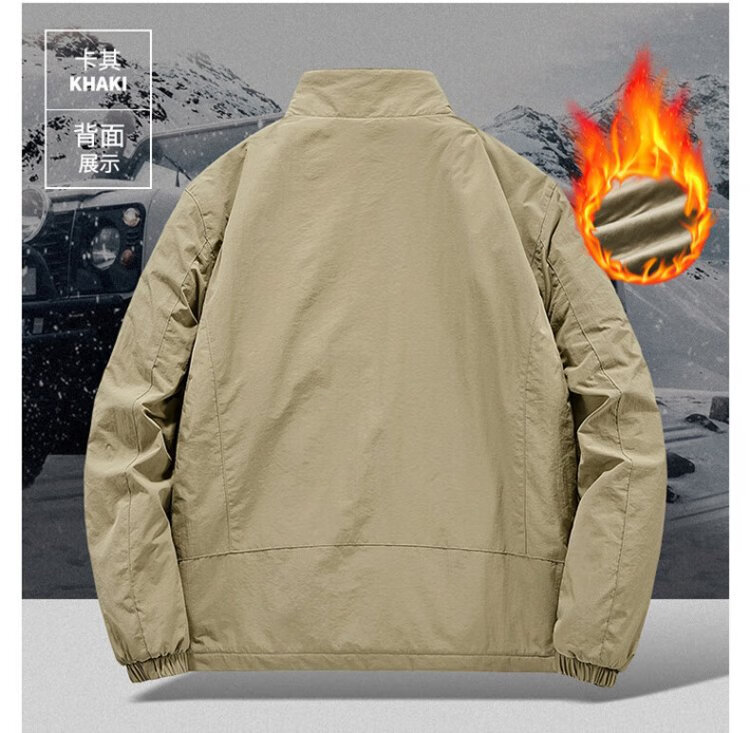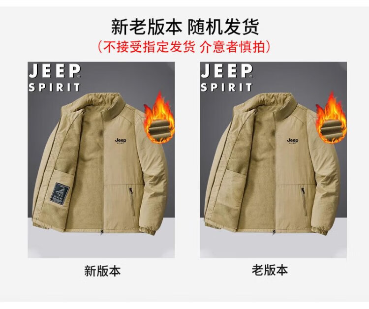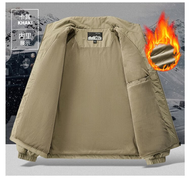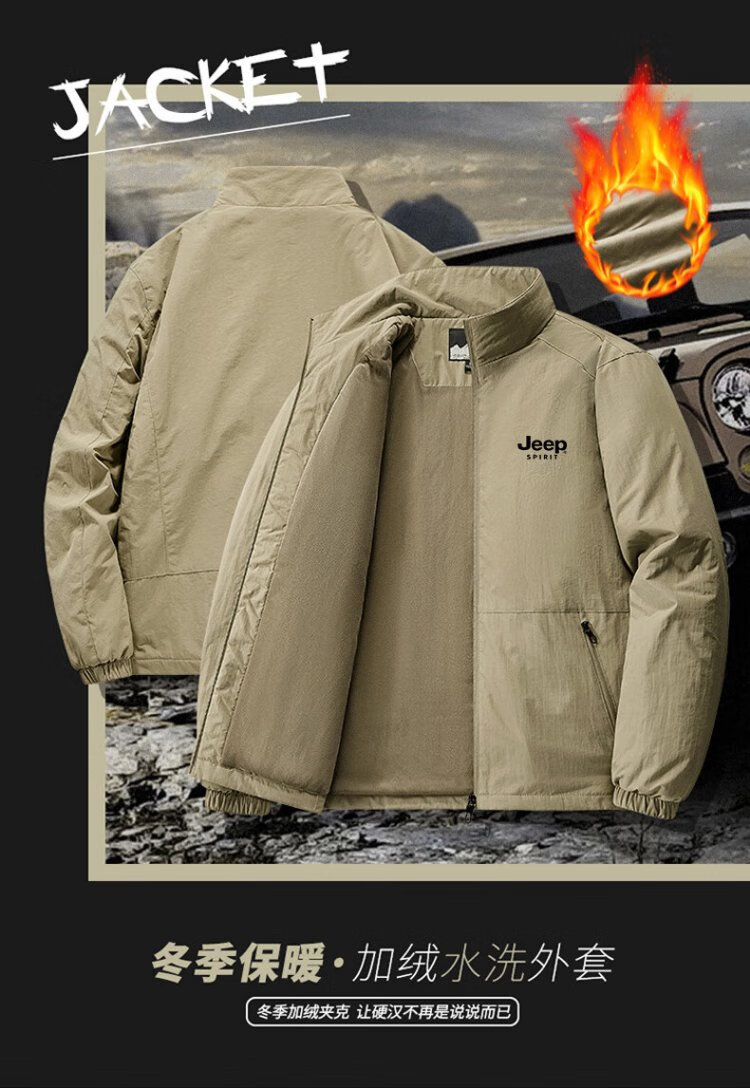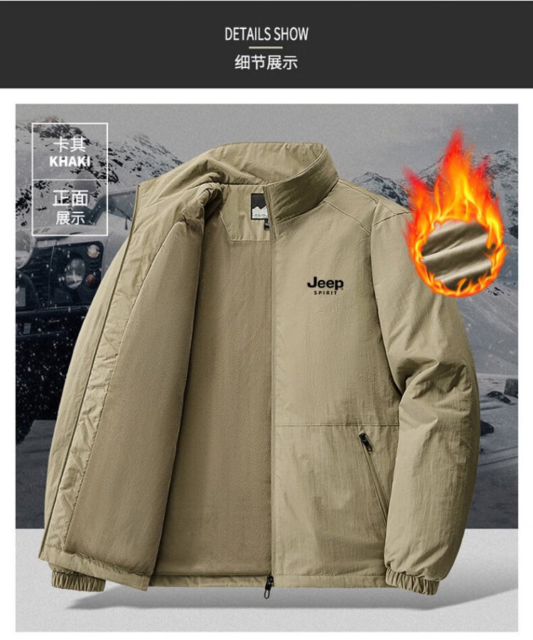 JEEP SPIRIT Jeep Jacket Autumn and Winter Men's Outdoor Loose Casual Stand Collar Warm Top Jacket Khaki Velvet XL