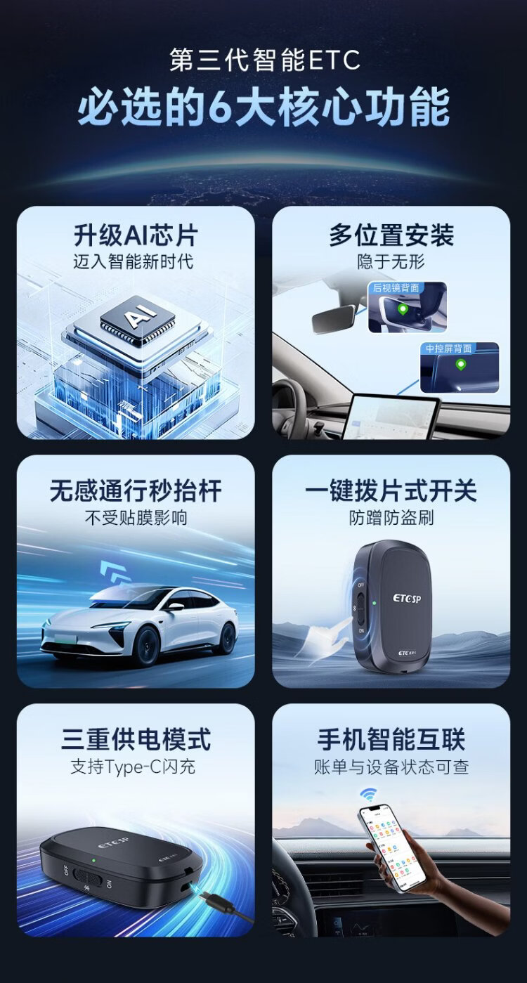 ETCSP2026 smart cardless etc. Free glass hidden installation and handling, WeChat deduction can be switched on and off, universal nationwide