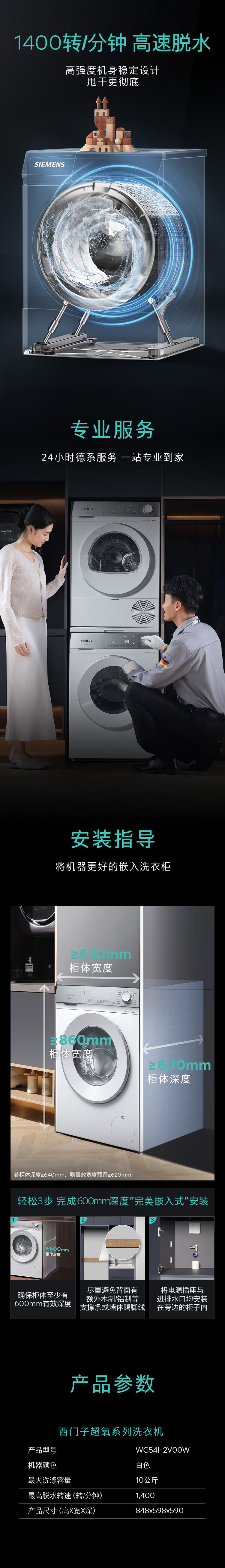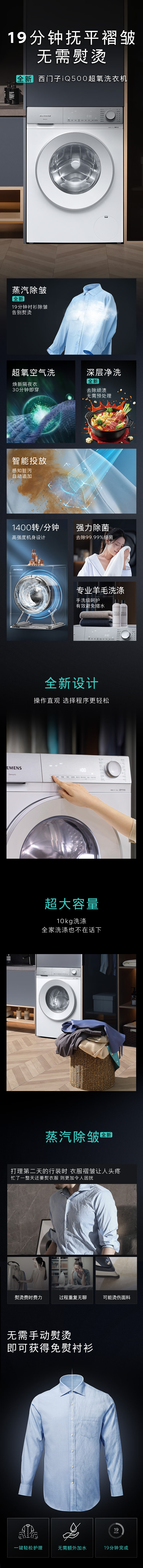 SIEMENS Small Crystal Diamond Luxury Care Master 10KG Large Capacity Fully Automatic Drum Washing Machine Super Oxygen Air Wash Steam Wrinkle Removal Super Oxygen Odor Elimination Intelligent Placement WG54H2V00W