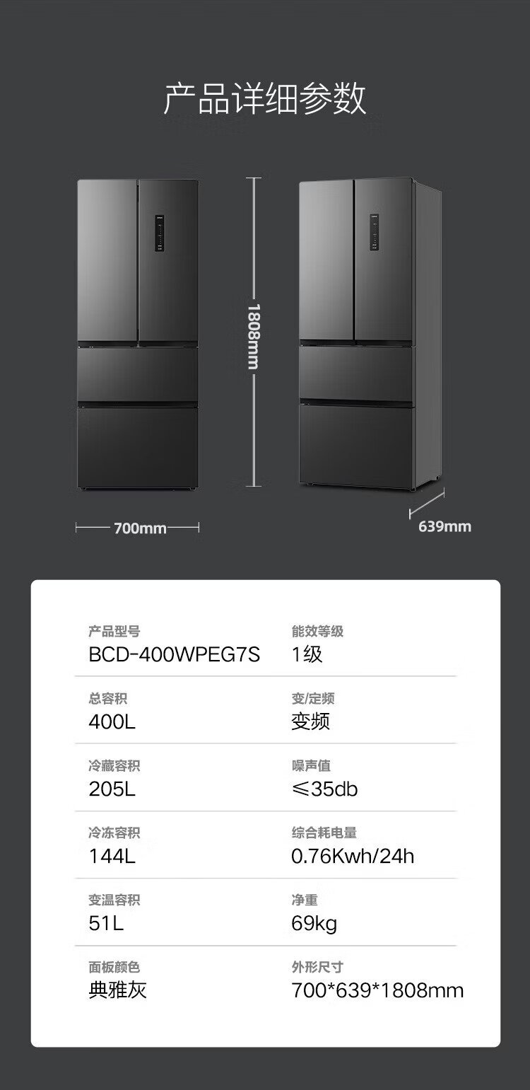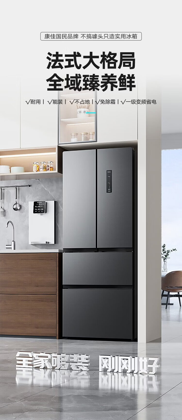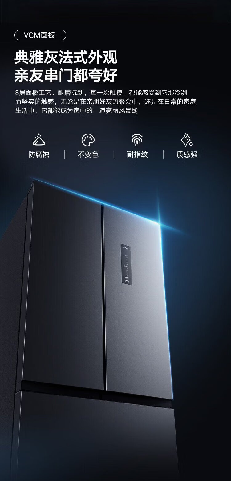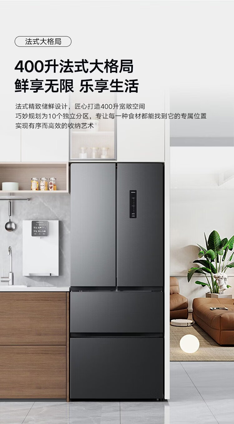 Konka 400 liters ultra-thin French multi-door four-door double-door refrigerator household dual-frequency first-class energy efficiency air-cooled frost-free small apartment BCD-400WPEG7S national subsidy