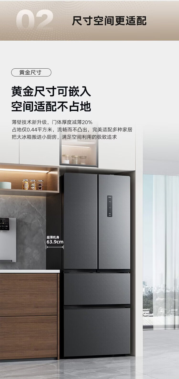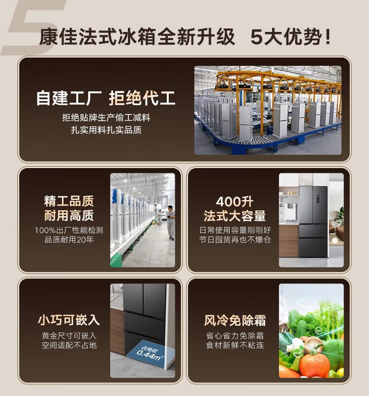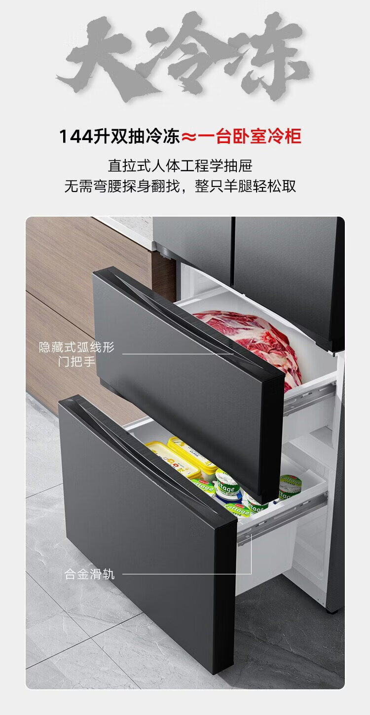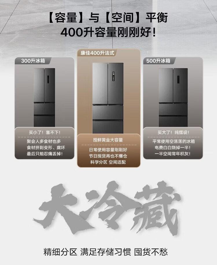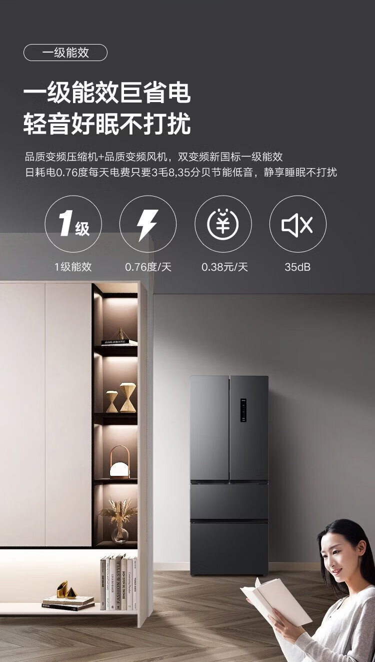 Konka 400 liters ultra-thin French multi-door four-door double-door refrigerator household dual-frequency first-class energy efficiency air-cooled frost-free small apartment BCD-400WPEG7S national subsidy